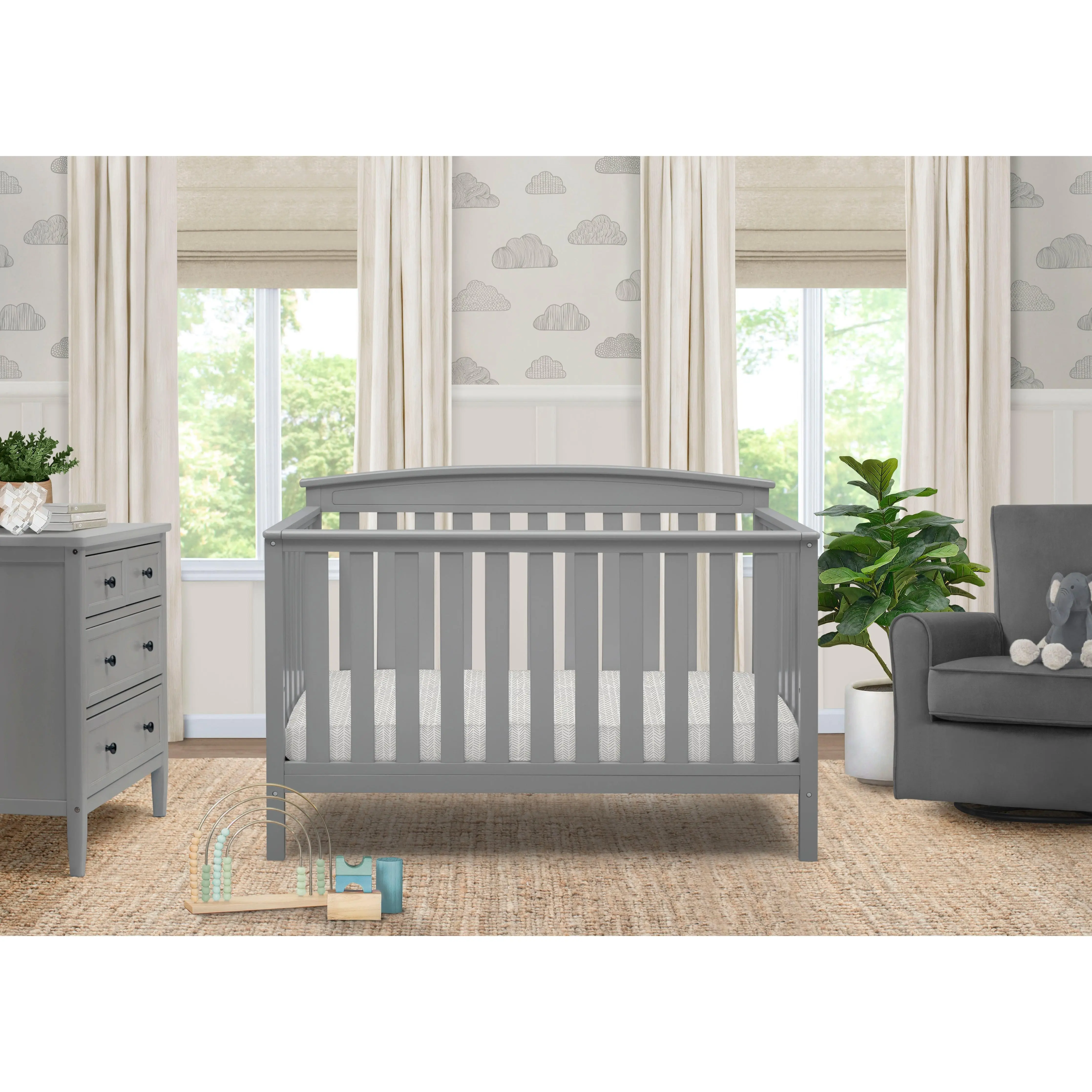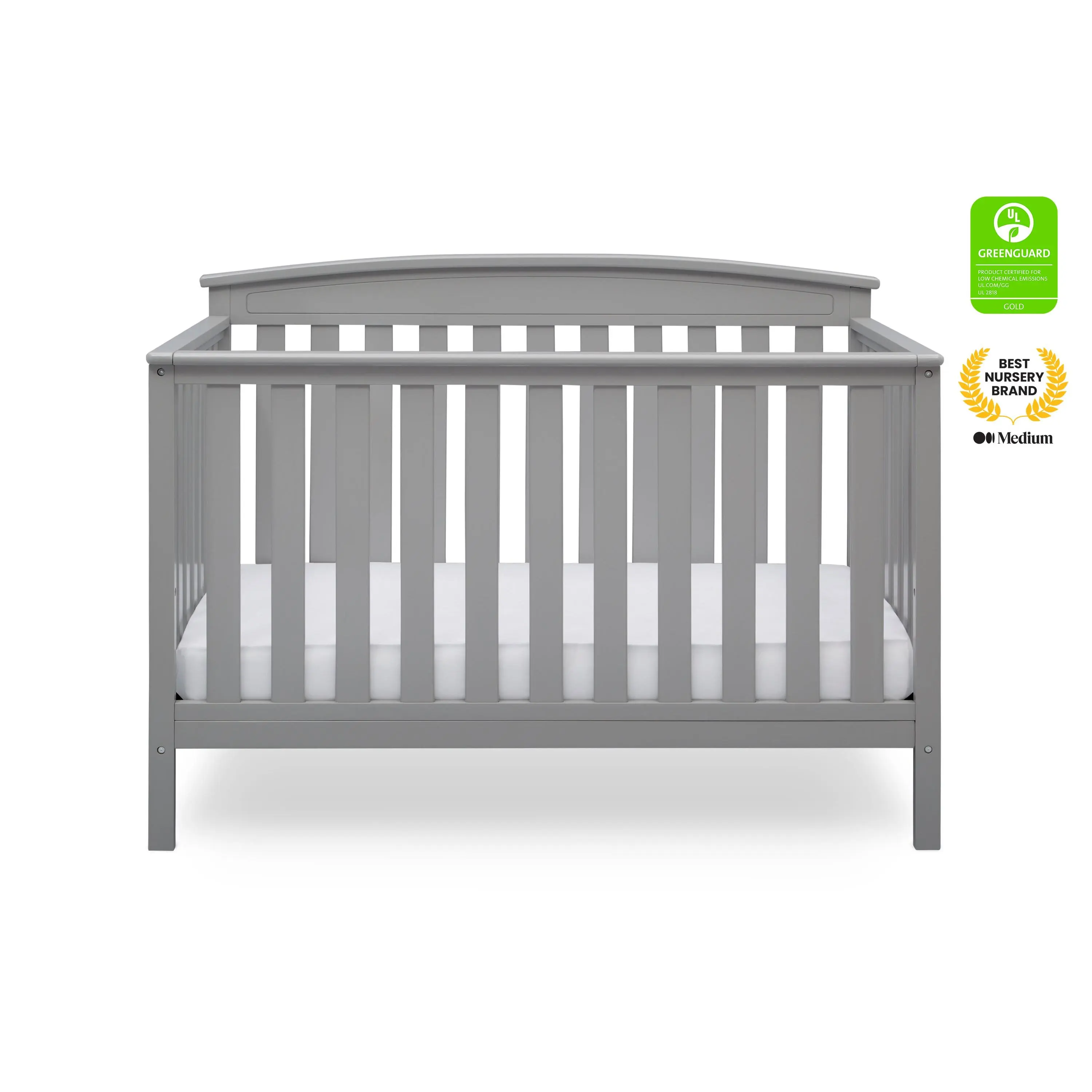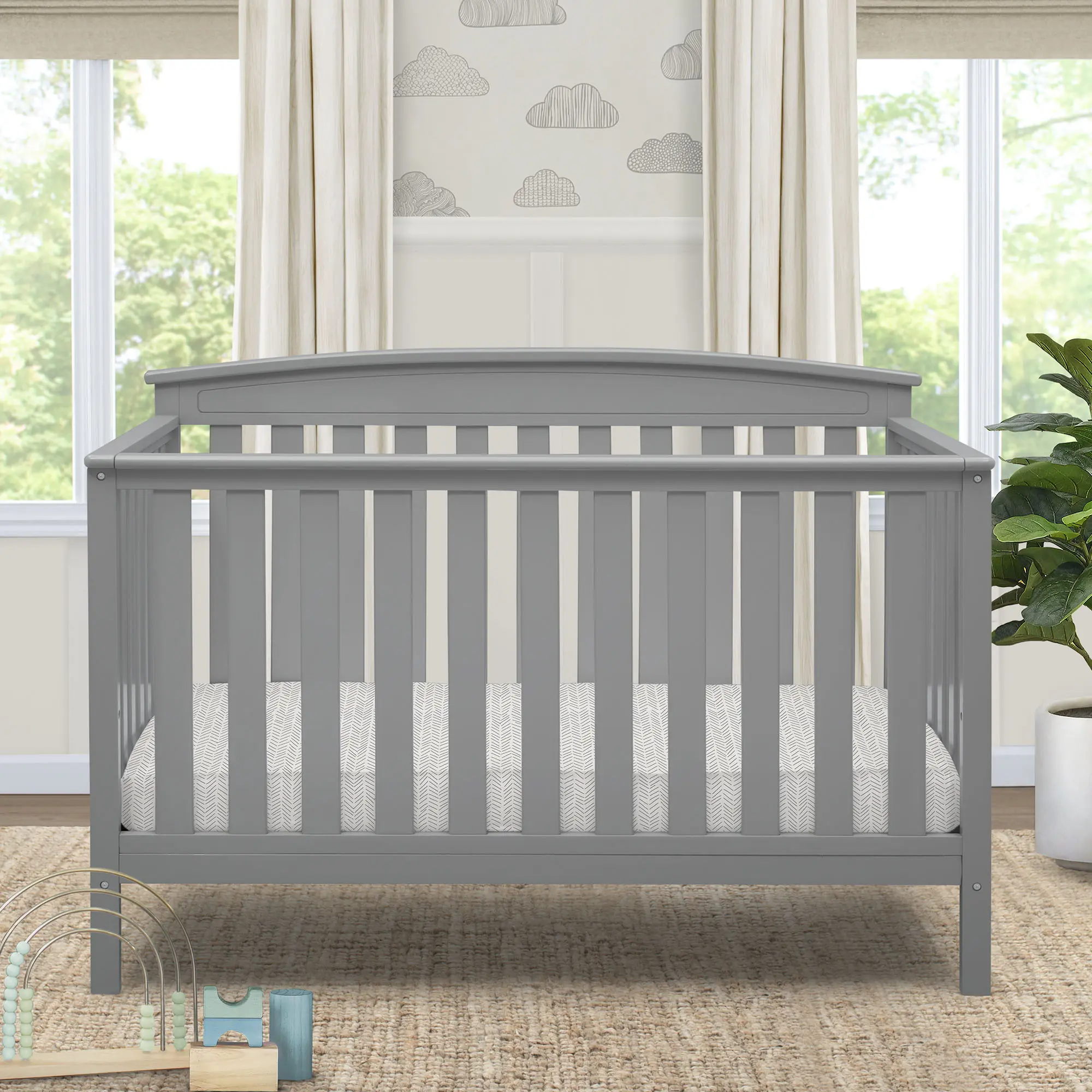 Looking for a crib with a kid-friendly design that grows with your baby? Look no further than Delta Children's Gateway 4-in-1 Crib! Beautifully built, it features crisp, clean lines and slightly curved back that finishes the nursery in sophisticated style while still meeting strict safety standards. And there's more—the crib converts into a toddler bed, daybed and full size bed with headboard, taking your little one from tot to teen effortlessly.