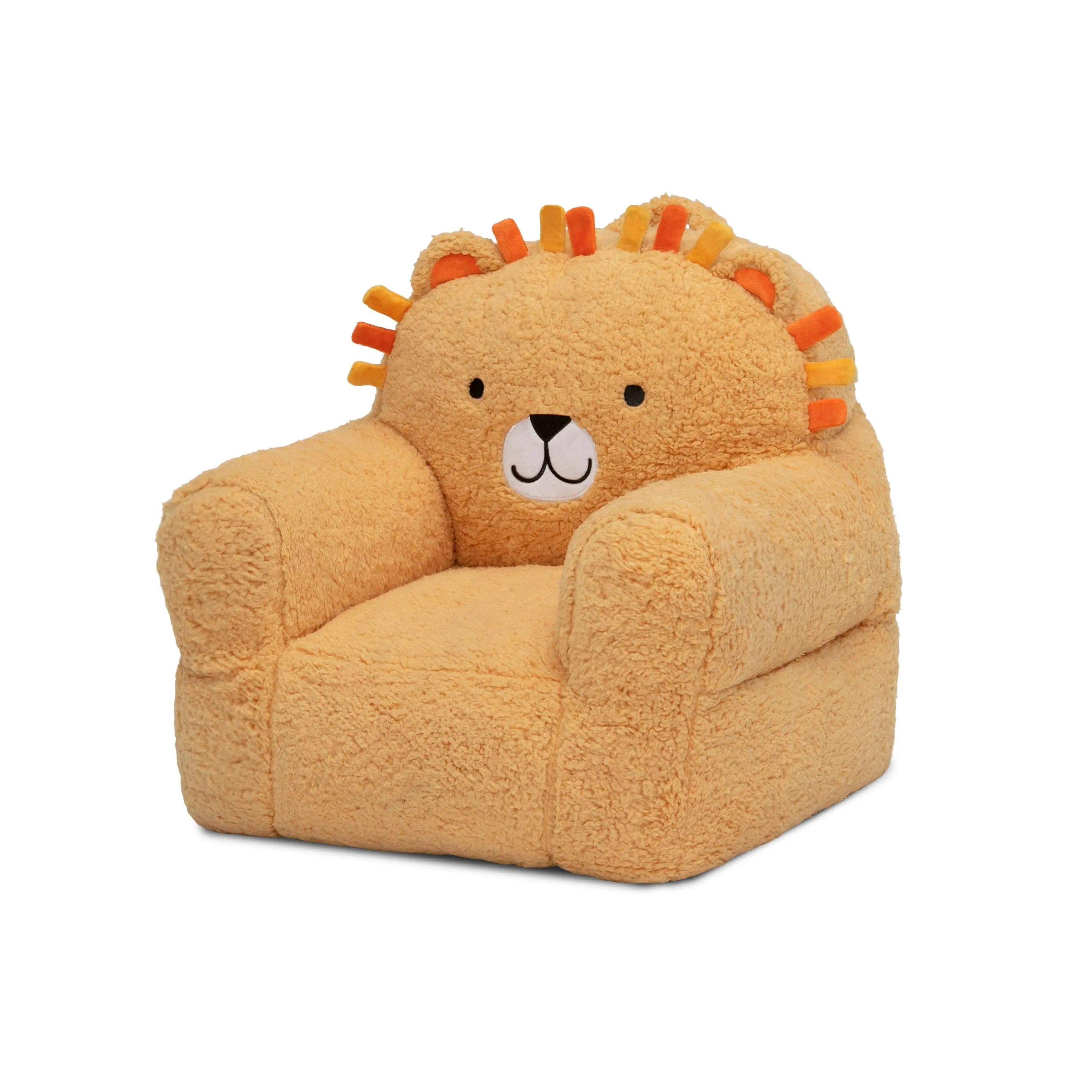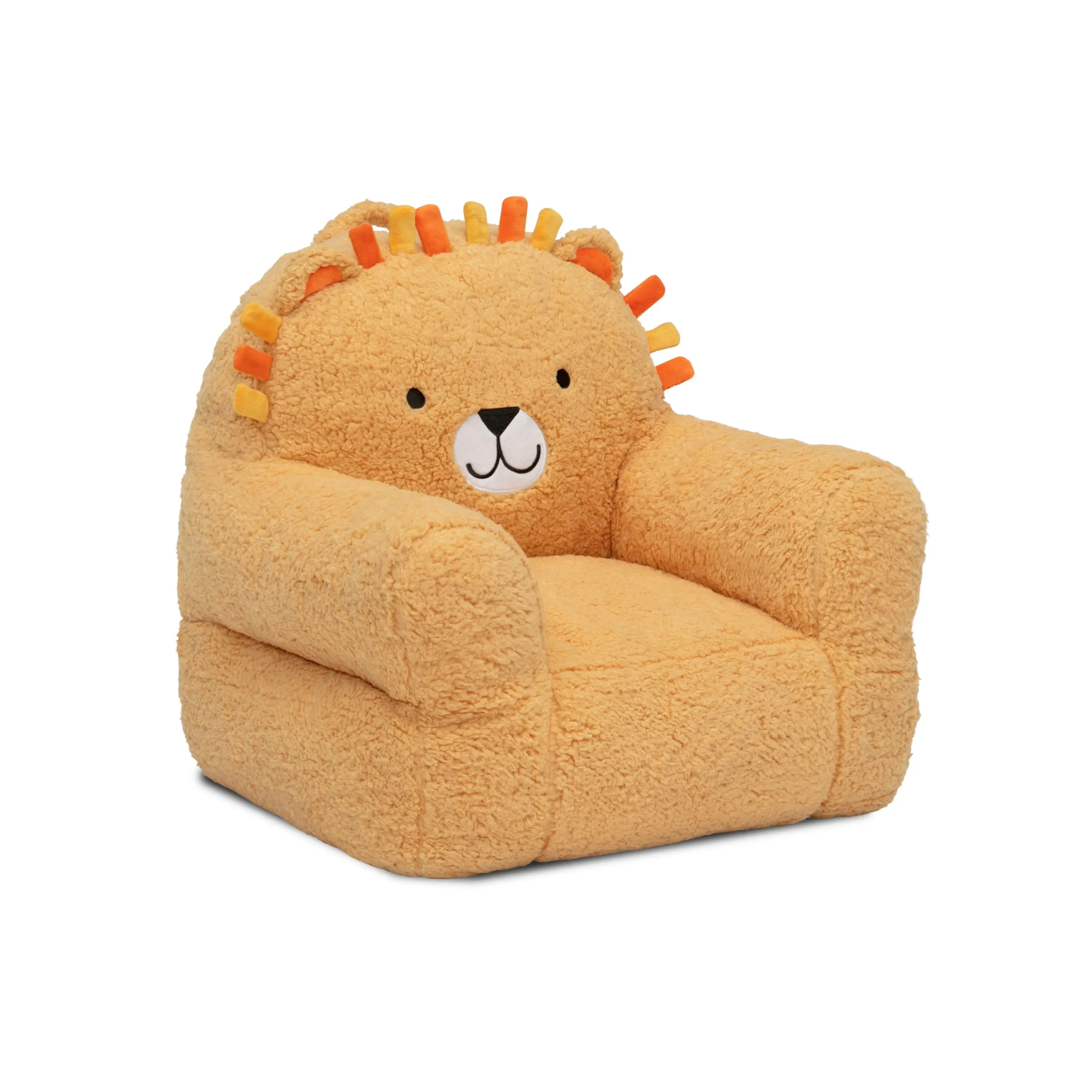 This Delta Children Lion Cozee Buddy Chair is king of the snuggle. A fiercely cute option for LION-ing around, this plush chair features cool lion details, super-soft fabric and a handle that makes it easy to move around the house! The foam design of this comfy chair offers toddlers a cozy companion for reading, relaxing or snuggling.