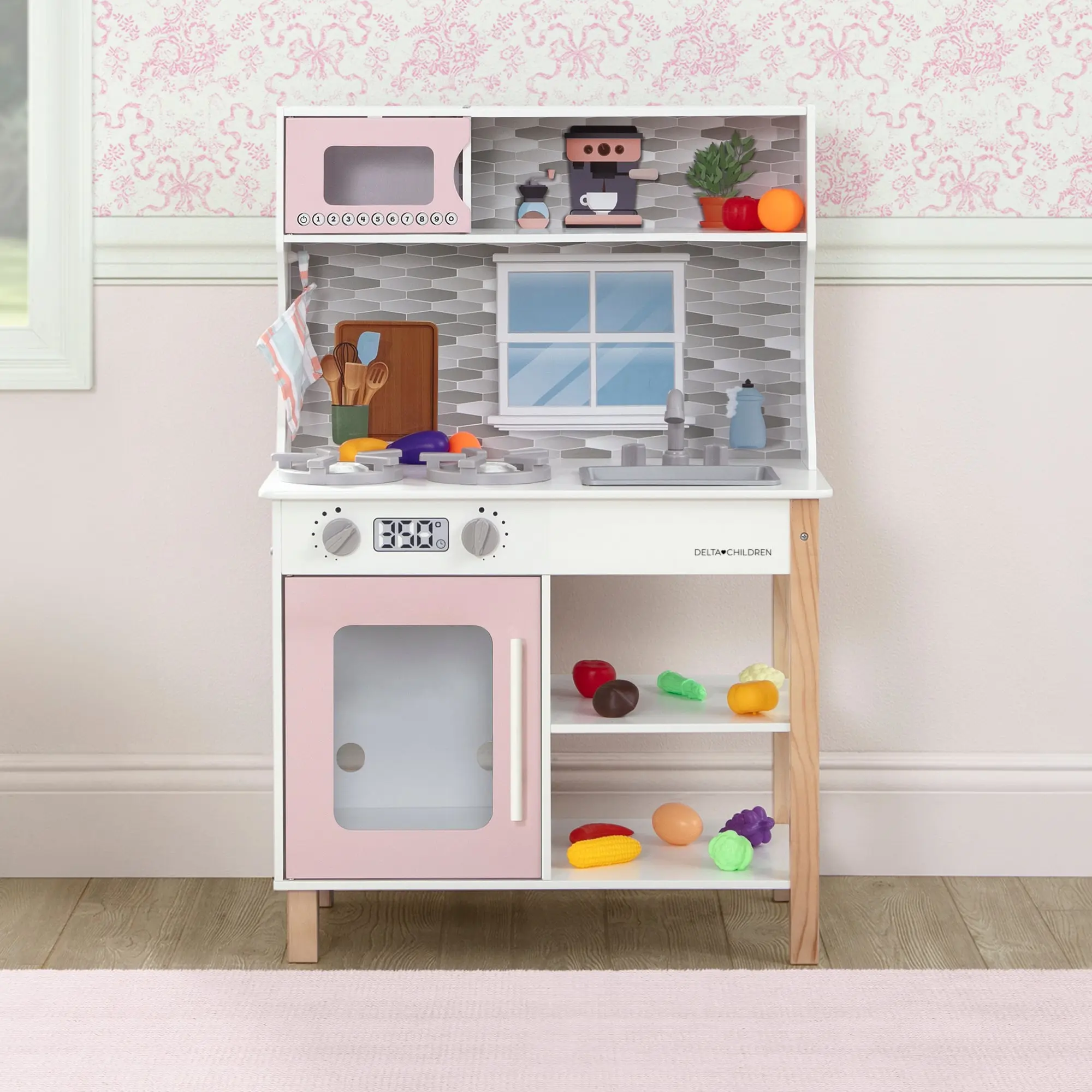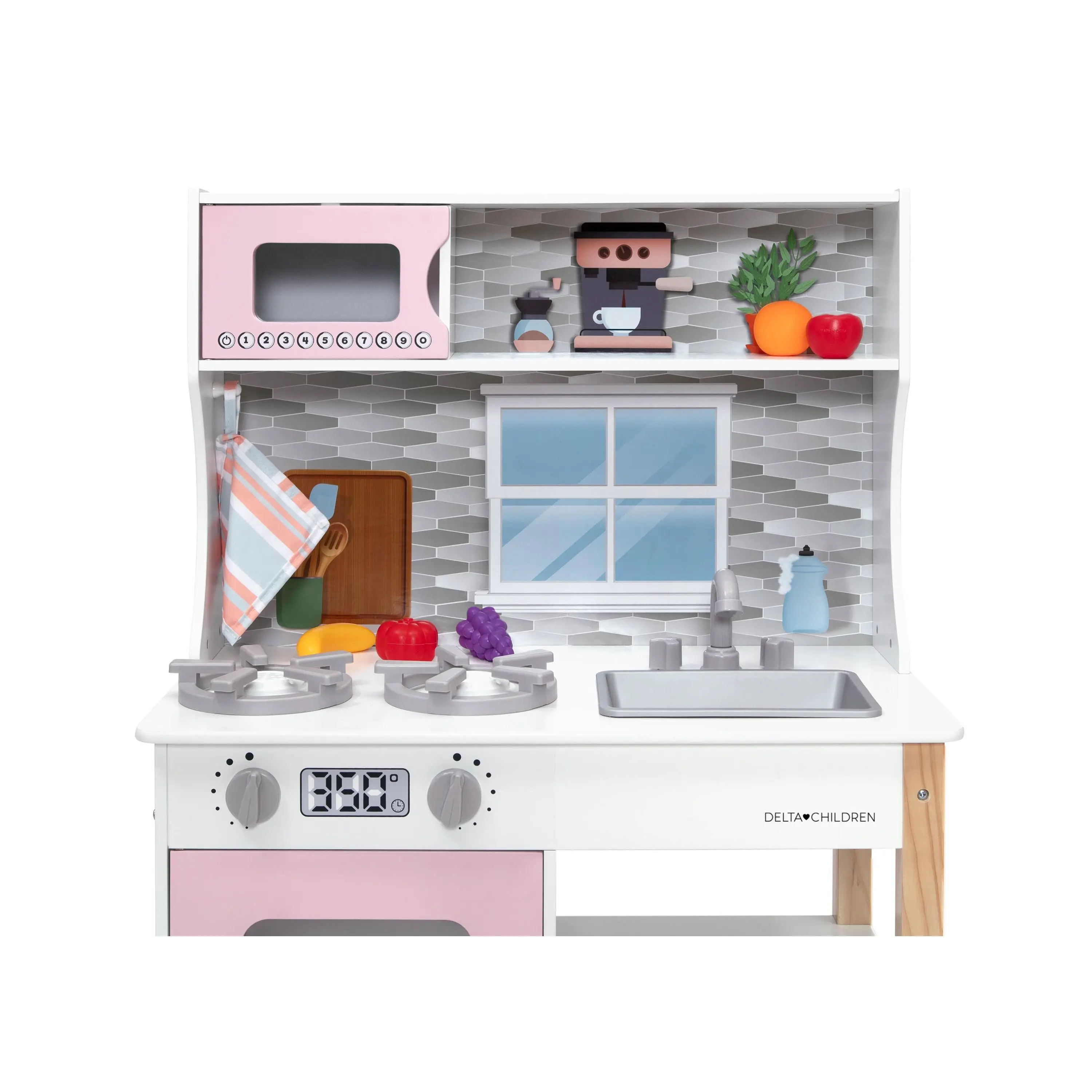 We upgraded my twins play kitchen to this one from delta children and it is amazing. The perfect size and so easy to build. We will be using this for years to come.