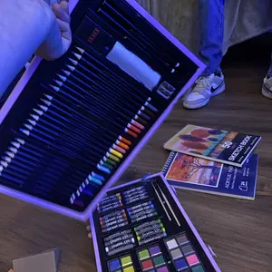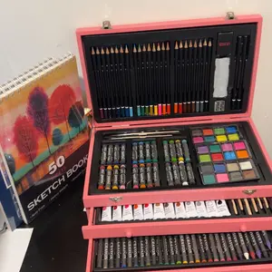 All art supplies are stored in a wooden case, ensuring safety. Non-toxic crayons, pencils, and pastels make it safe for use. This set is an excellent gift for artists, students, or any art enthusiasts. It promotes a healthy environment while fostering creativity.