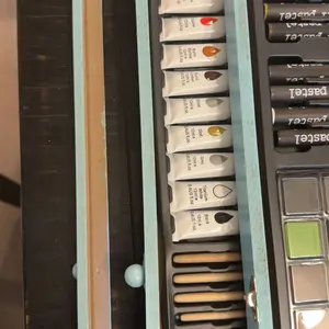 The set is neatly organized in a rich mahogany wood case. It features a removal drawer for convenience. The sturdy protective wood case keeps supplies organized. Perfect for creating art anywhere, this set is a portable art maker.