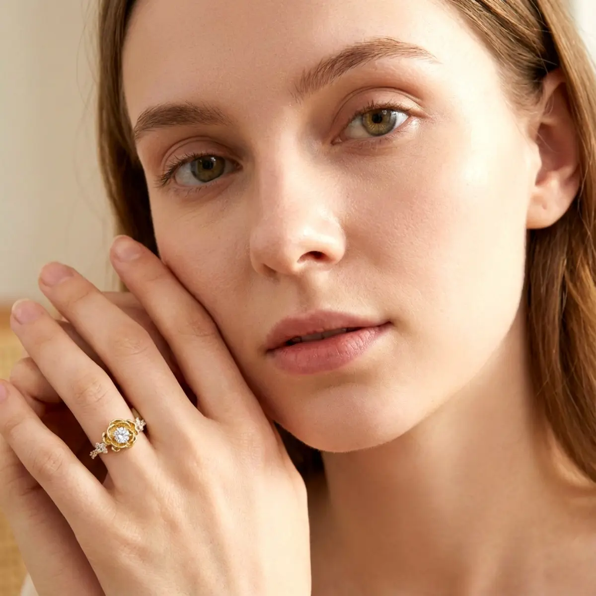 ·The intricate vintage rose design features delicate petals and three-dimensional floral cluster, symbolizing enduring beauty and timeless romance.