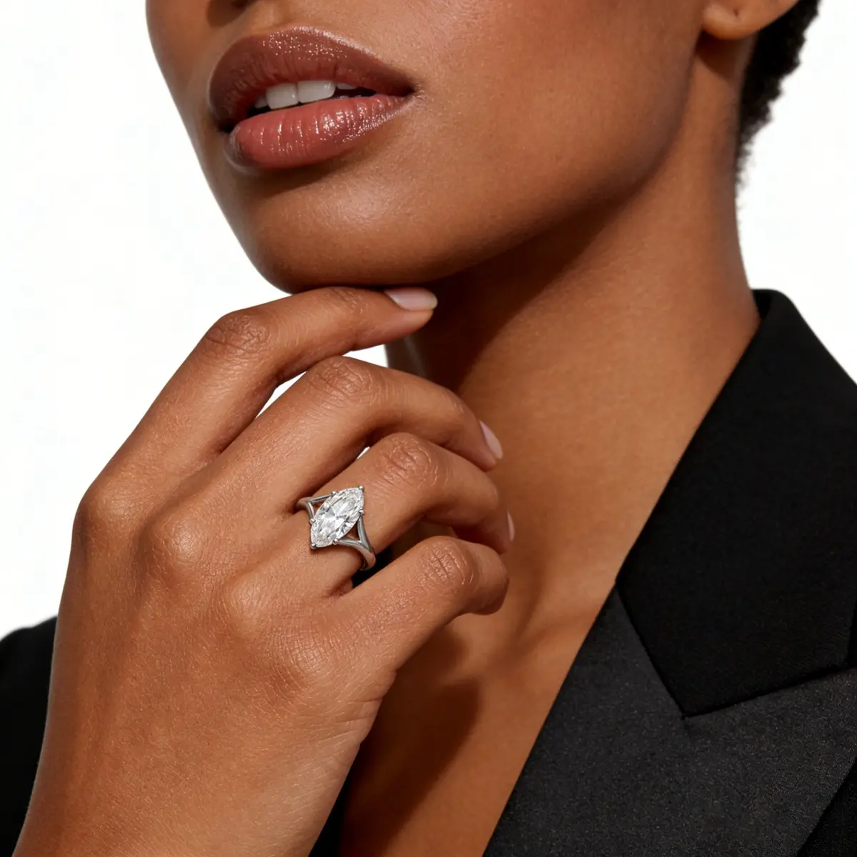 ·With its split shank design, this ring adds a touch of modern sophistication to its timeless elegance.