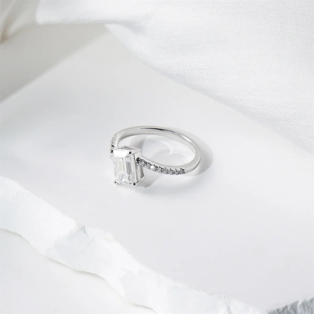 ·Step Cut Stone Size: 6*8mm(2ct); Round Cut Stone Size: 1.2mm*16(0.128ct)