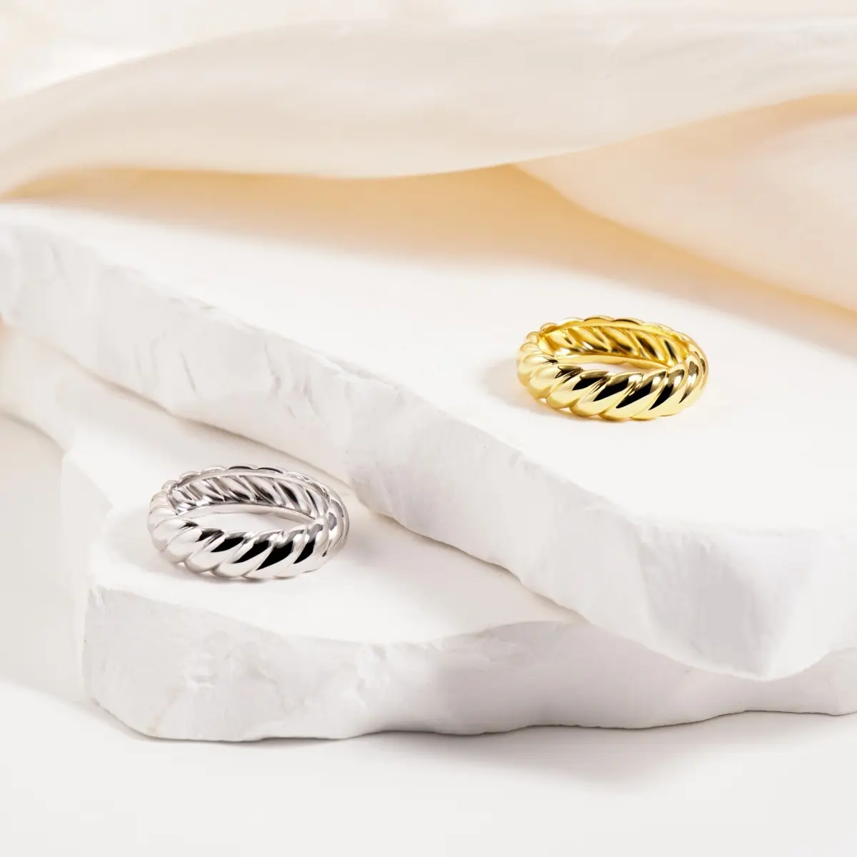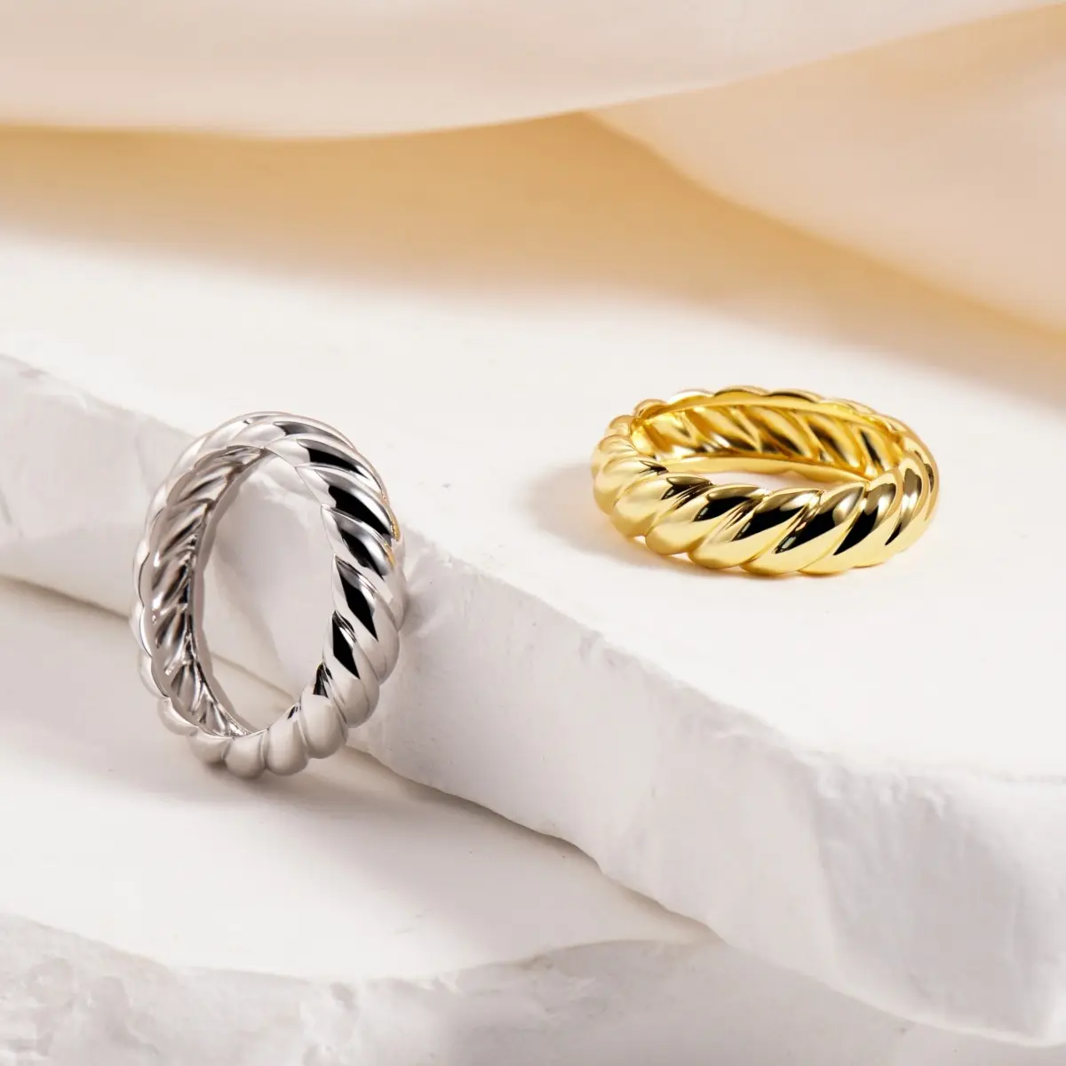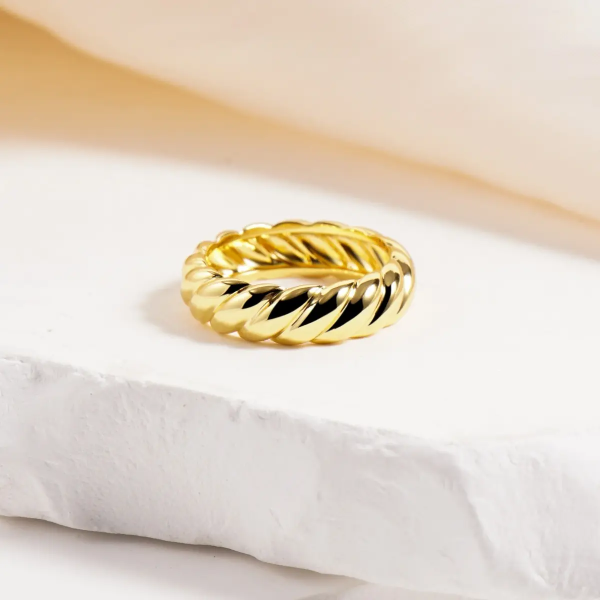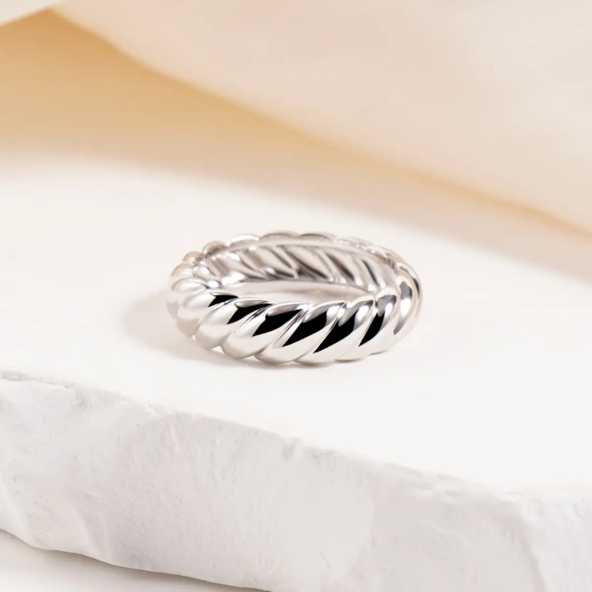·The bold, chunky band features an intricate twisted rope design, symbolizing strength and eternal connection.