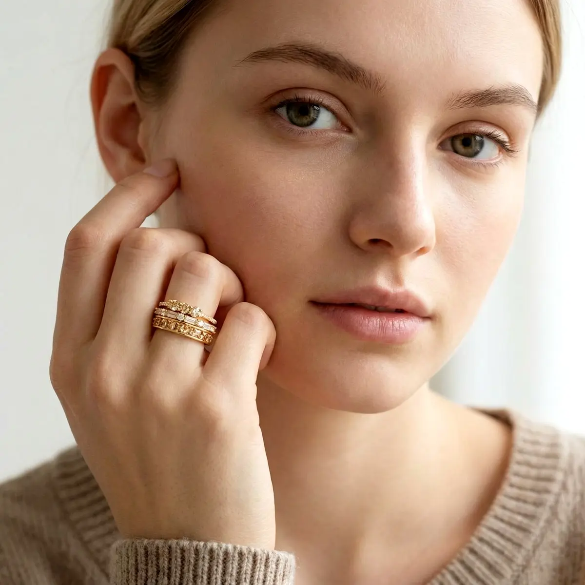 ·The three bands symbolize an unbreakable bond of love, friendship, and fidelity. The elegant champagne hue and vintage styling create a harmony that is both classic and personally meaningful.