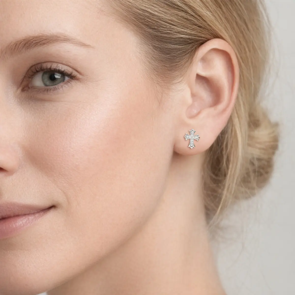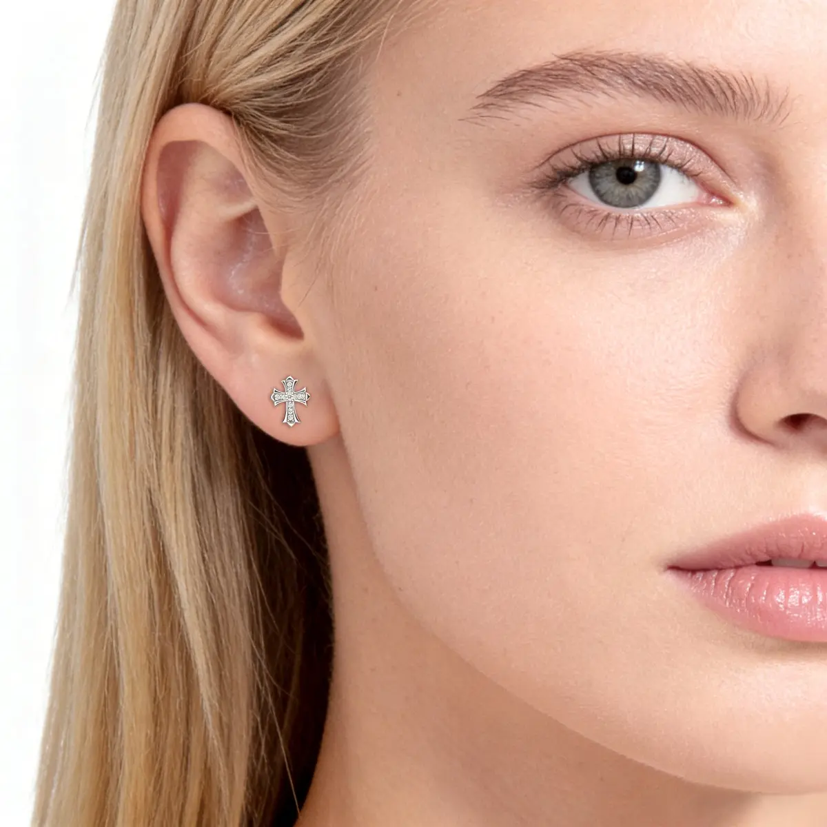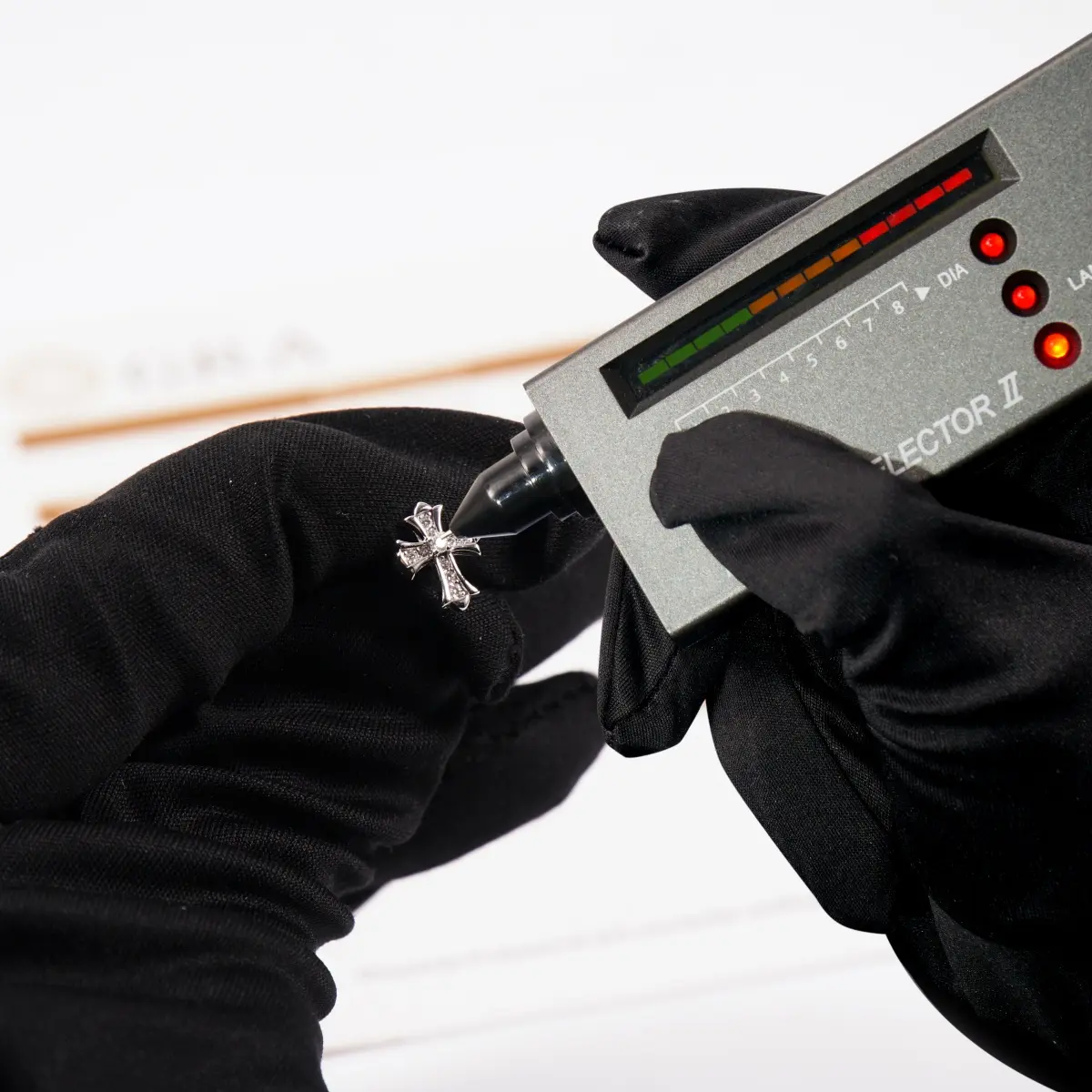 ·The iconic cross design is meticulously set with a cluster of stones, creating a captivating blend of Gothic edges and luxurious detail.