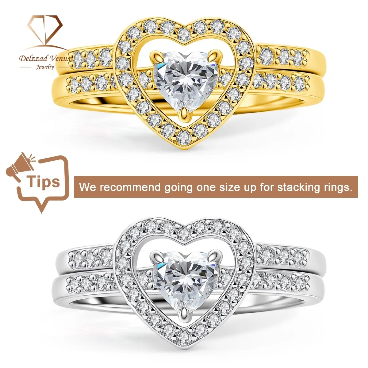 ·Precise halo heart cut design of this ring set, 2pcs rings looks sparkling and modern together, symbolizing love surrounded by eternal glow.