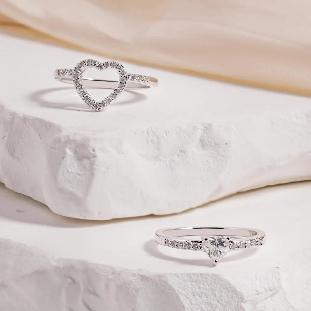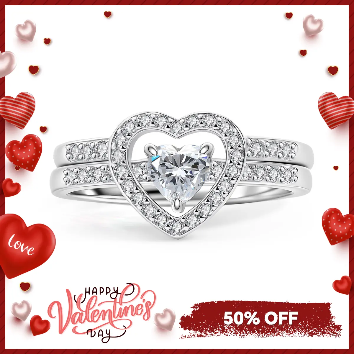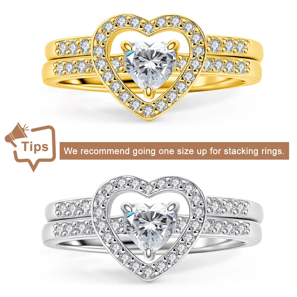 ·Precise halo heart cut design of this ring set, 2pcs rings looks sparkling and modern together, symbolizing love surrounded by eternal glow.