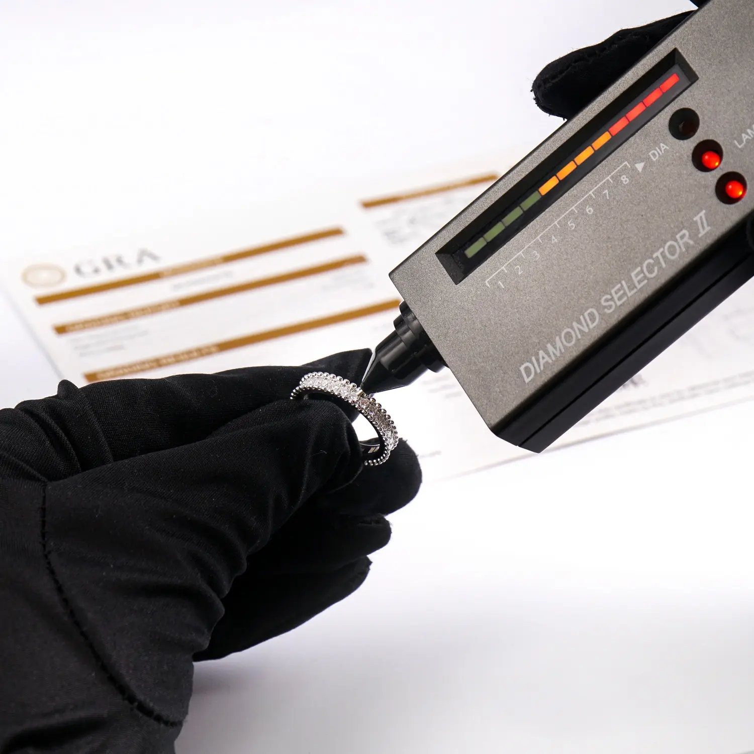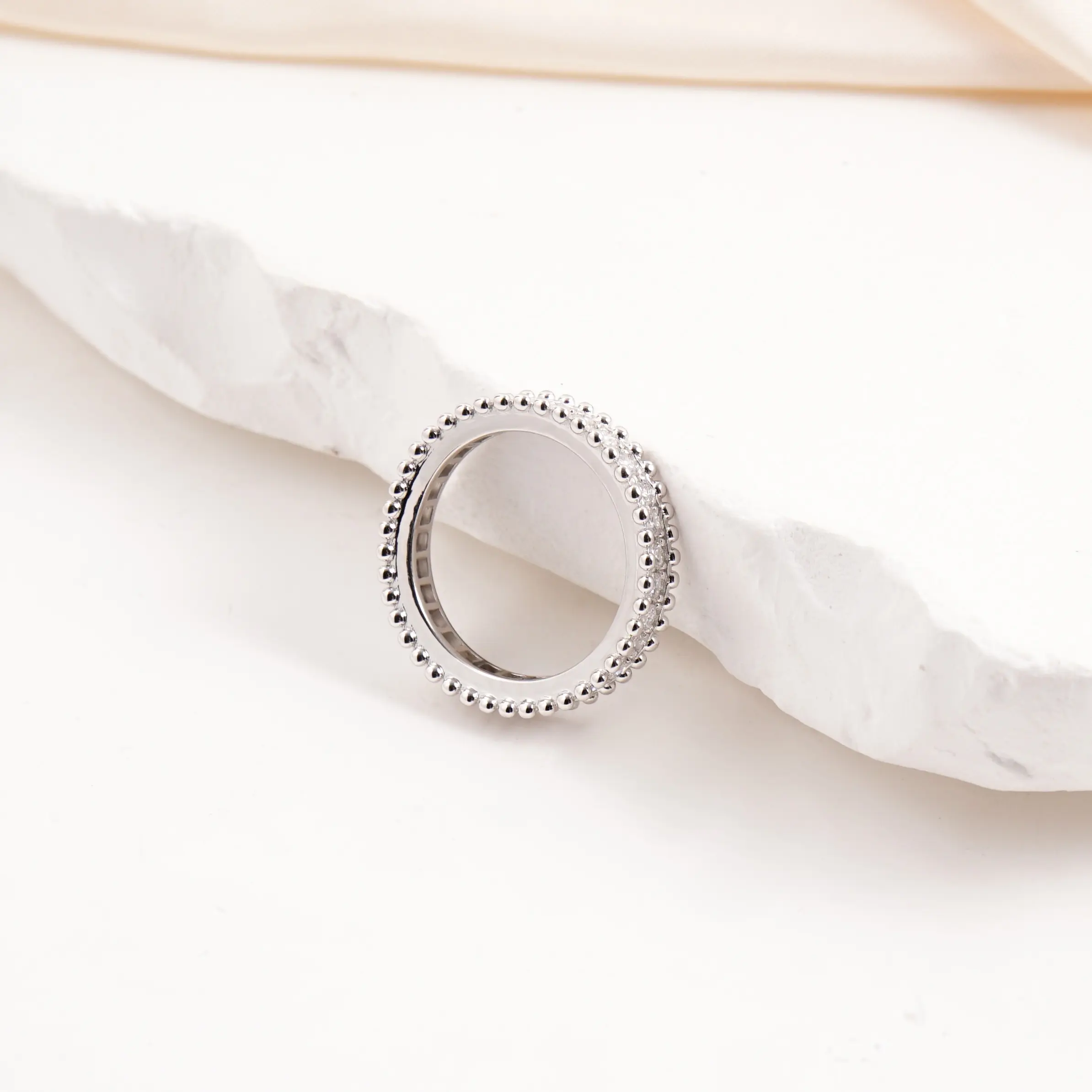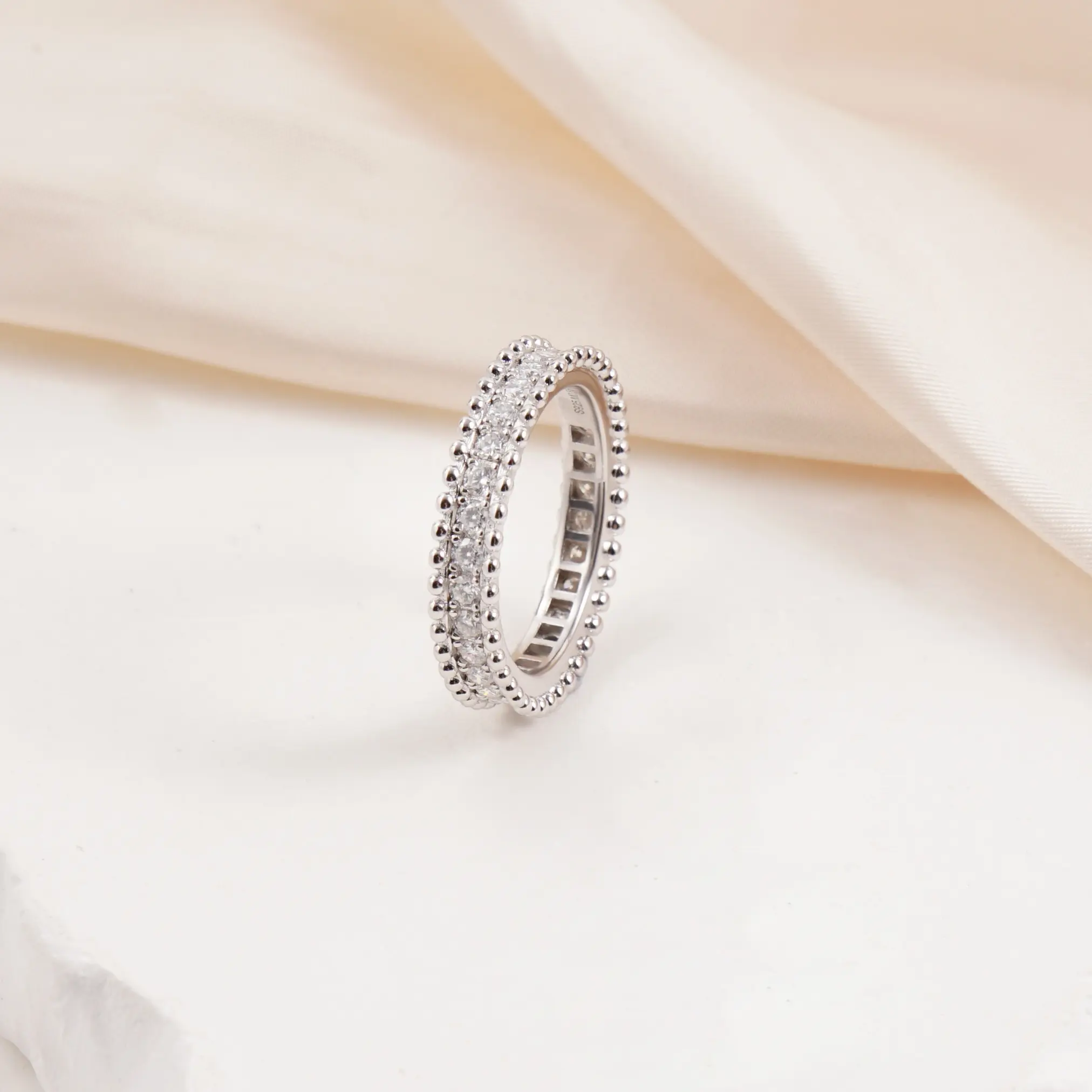 ·This full eternity band features meticulously set, round-cut stones that encircle the entire ring, symbolizing everlasting love and commitment.