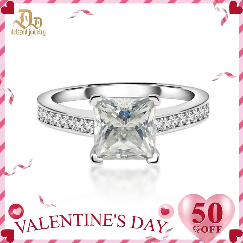 Delzzad 2ct Solitaire Ring Princess Synthetic Moissanite S925 Christmas Gift