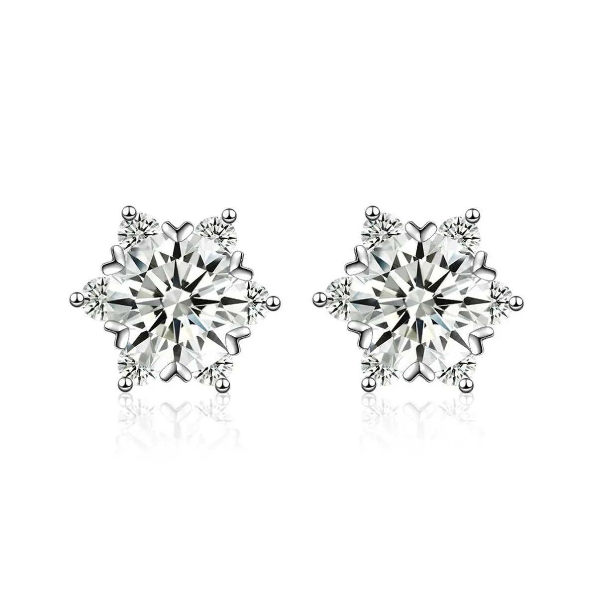 Inspired by winterâs natural beauty, these synthetic moissanite snowflake stud earrings capture the brilliance of falling snow in every gleam.