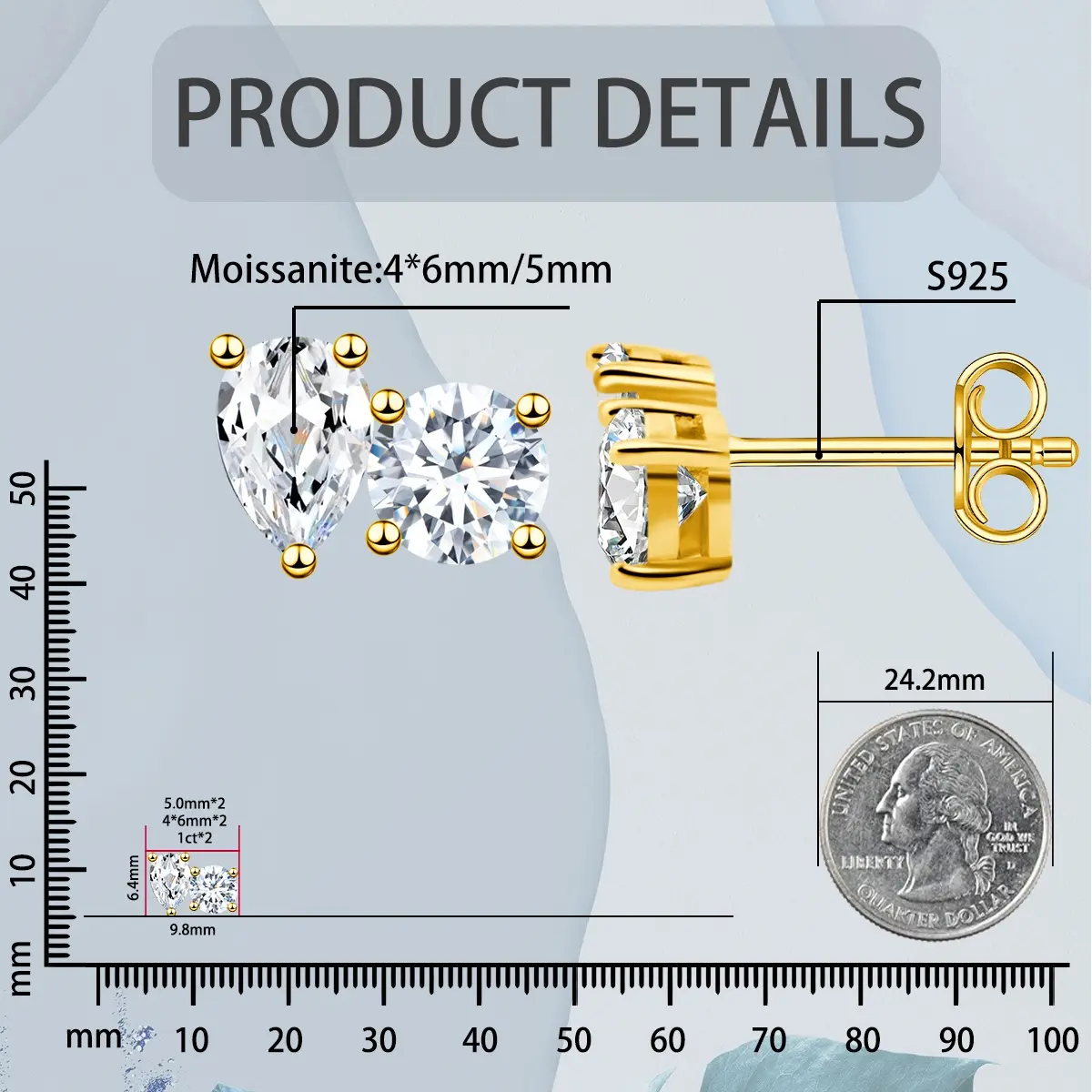 ·Stone Size: Pear Cut 4*6mm*2; Round Cut 5.0mm*2
