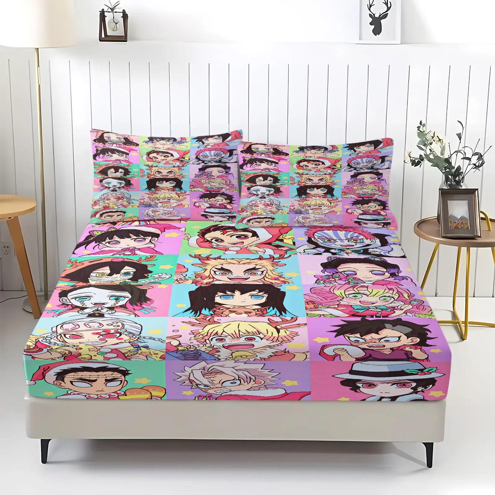 3-Piece Demon Slayer Bedding Set, Comfortable Printed Design, Includes 1 Fitted Sheet & 2 Pillowcases, Non-Slip, Perfect Gift, Bed Sheets