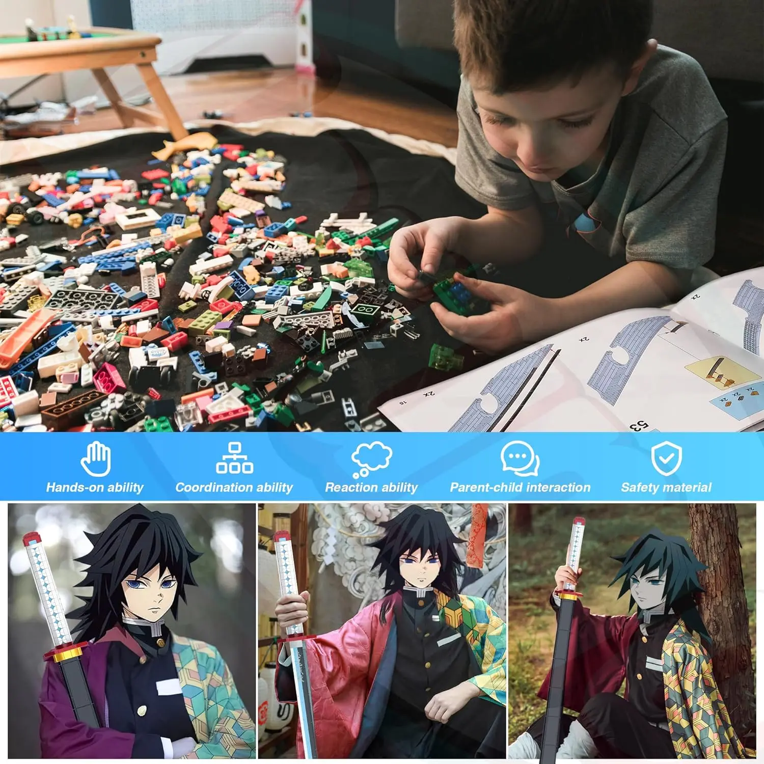 ·Highly Original: This Building Block is Tomioka Giyuu from the anime Demon, and has been carefully designed. The body and handle are all made in accordance with the original. It's a cool collectible.
