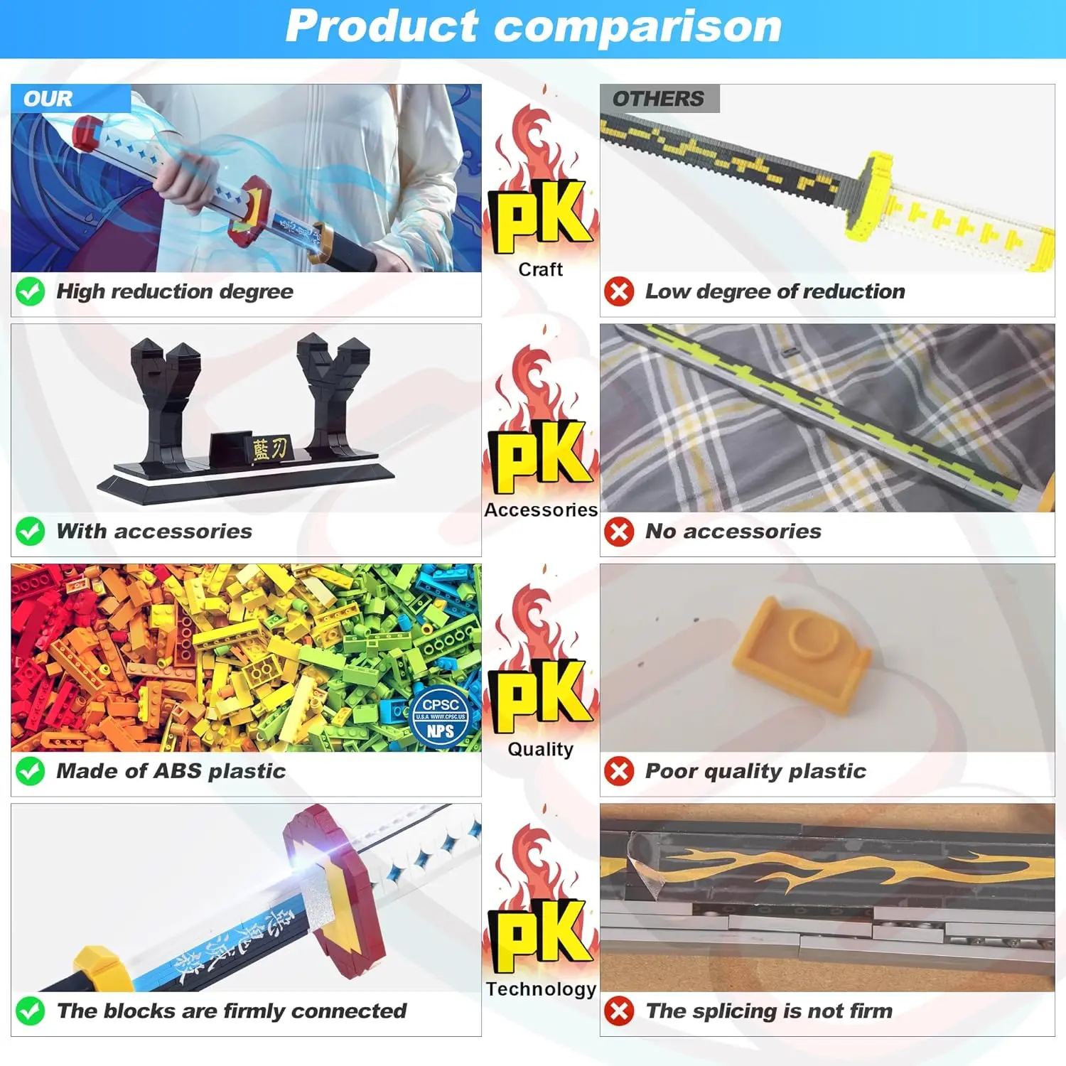·Regular Size: This Toy contains 768 blocks, it comes with a stand,and composed of high-quality building blocks. The 39-inch length giving you a perfect grip, It Is the best choice for cosplay. Note that it only supports light swing, please don't swing it vigorously.