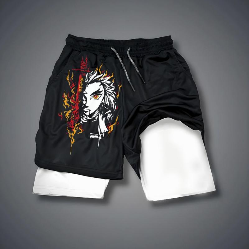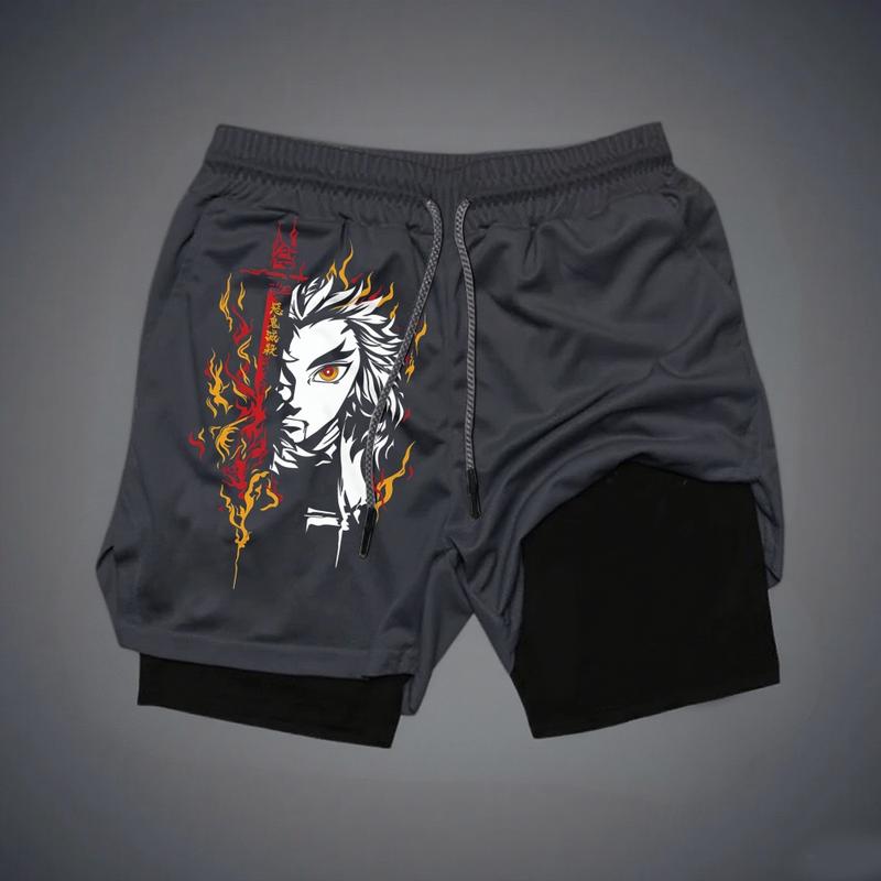 Demon Slayer 80s 90s summer men shorts for men jorts outfit men graphic shorts Double-layer sports shorts Comfortable short shorts summer