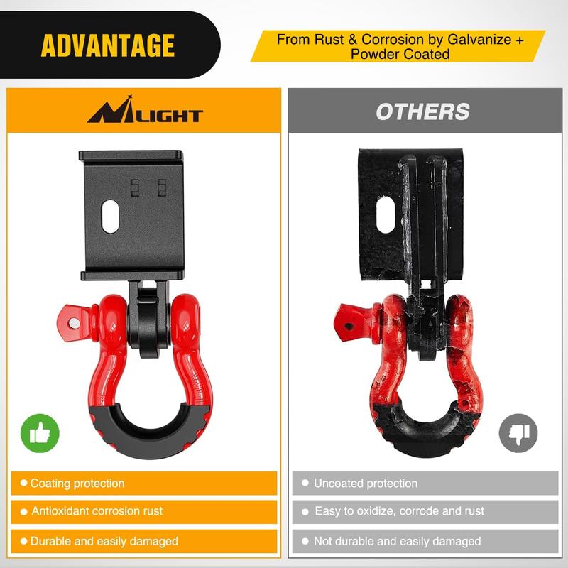 ·【Premium Material】The Tacoma hook bracket with shackle is made of heavy duty steel with a rust and corrosion resistant black powder coated and is laser cut to shape. Shackles have a breaking point of 36 to 48000lbs.