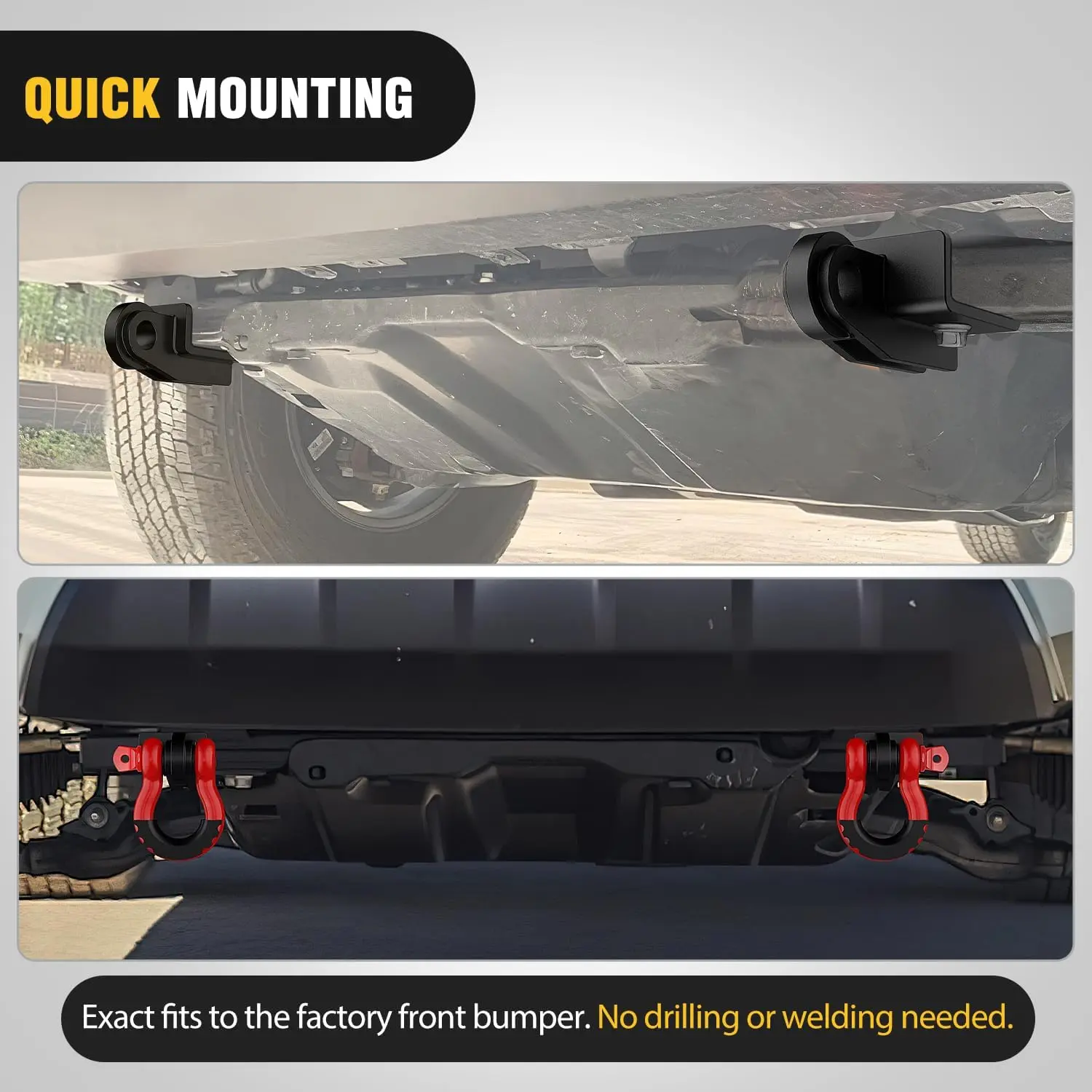 ·【Fitment】Demon Tow Hook Bracket with a 3/4-inch D-Shackle is compatible with Toyota Tacoma with factory bumpers (2009-2023). They can work with factory skid plate, not suitable for aftermarket skid plate.