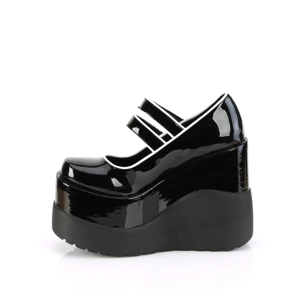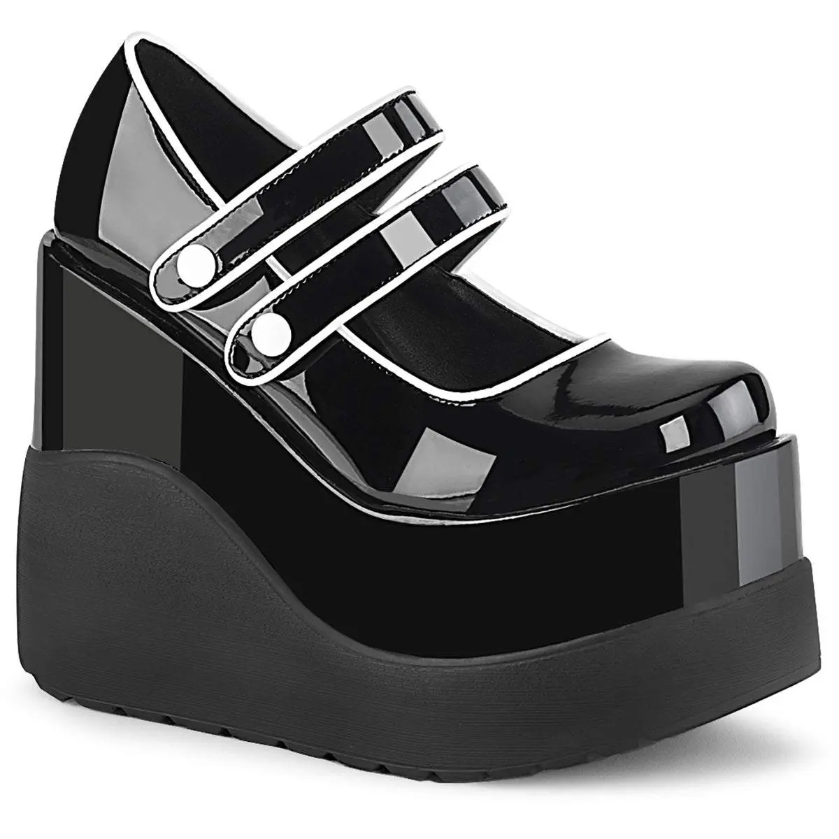 5" (127mm) Wedge Platform Maryjane W/ Double Hook N' Loop Straps, Contrast Piping & Buttons