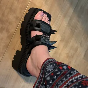 So i am a 9 and ordered a 9, and that size typically works fine with my super wide toe bed because the straps will stretch out a bit, but with the stiffness that the large spikes add to straps I am sending my 9s back and sizing up to a 10 becausei dont see these straps stretching much at all. Otherwise I absolutely adore the style and feel, very cushy and sturdy as HECK