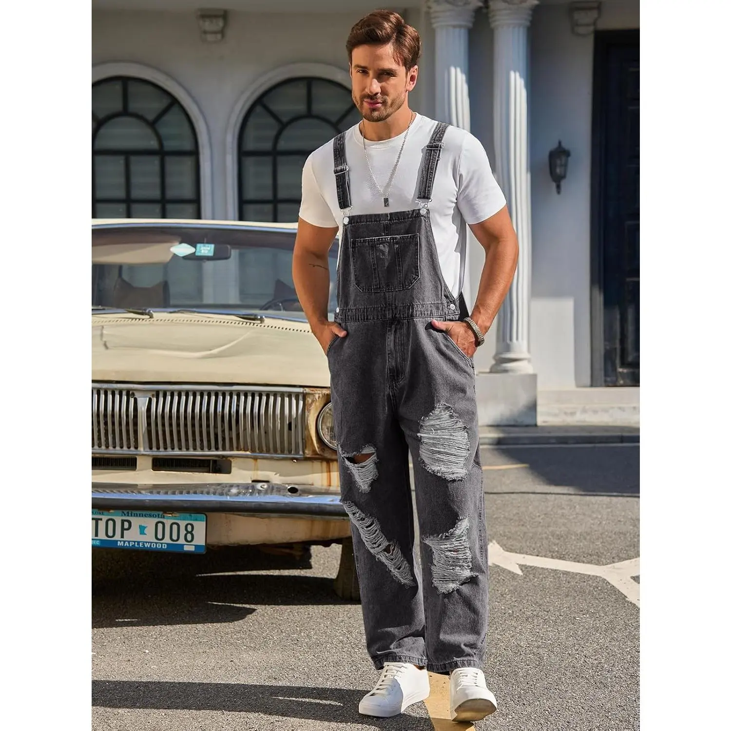 PASLTER Menโ€™s Denim Bib Overall Ripped Distressed Jean Casual Fashion Workwear Adjustable Strap Hip Hop Jumpsuit #fashion #streetwear #designer #overalls #bibs