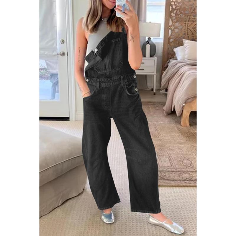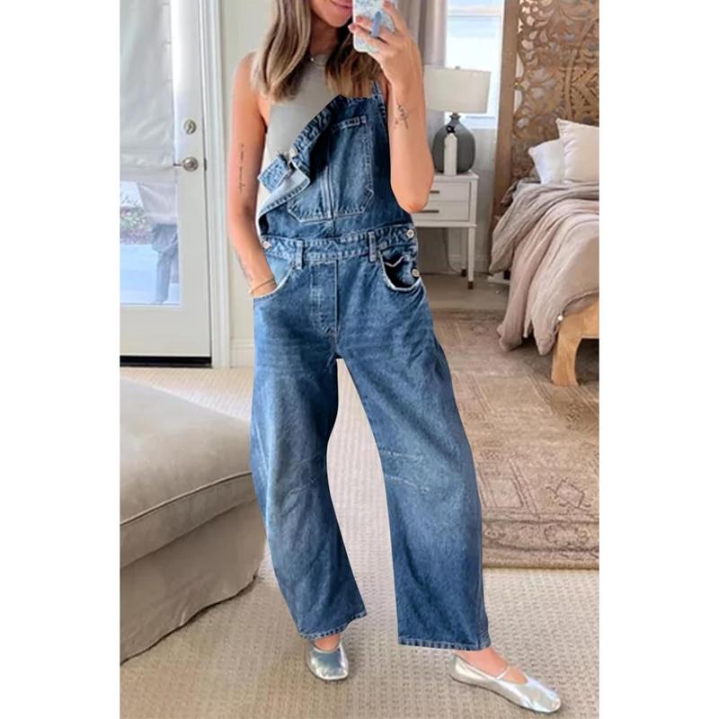 Danedvi Womens Denim Bib Overalls Barrel Leg Adjustable Strap Jean Pants Jumpsuits with Pockets