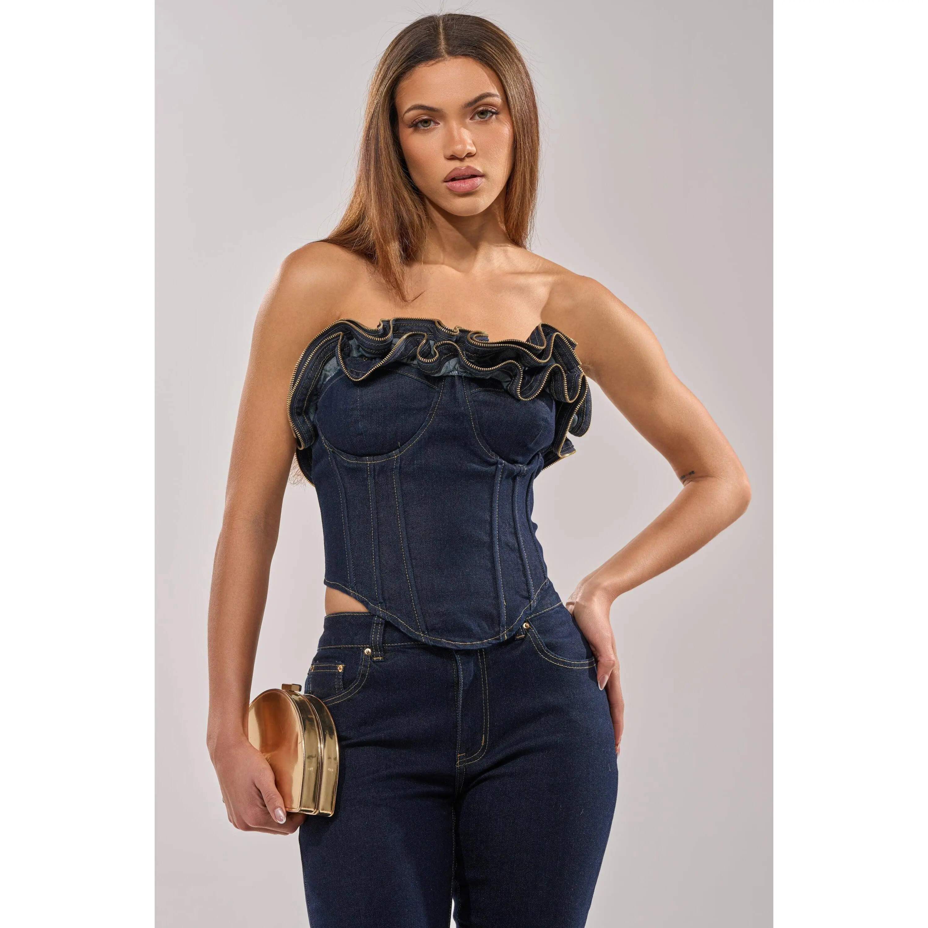 SOMETHING DIFFERENT DENIM CORSET WITH ZIPPER DETAIL