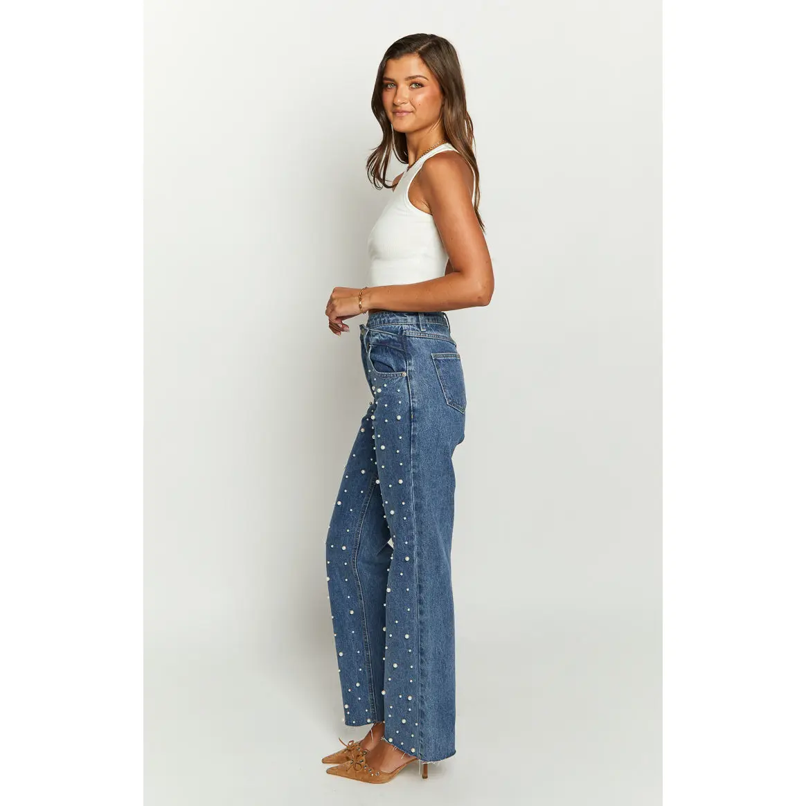 Denim Dazzle Pearl Mid Wash High Waisted Jeans