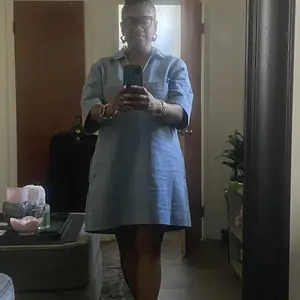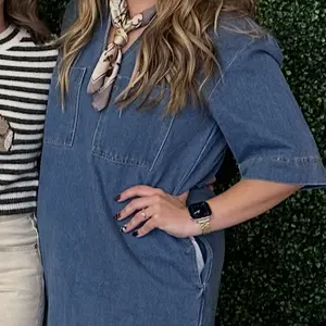 ·Design Details: Deep V neckline, shift silhouette, mini denim dress, short sleeves. Two side pockets and 2 patch pockets. Loose fit for all-day comfort. 🌟