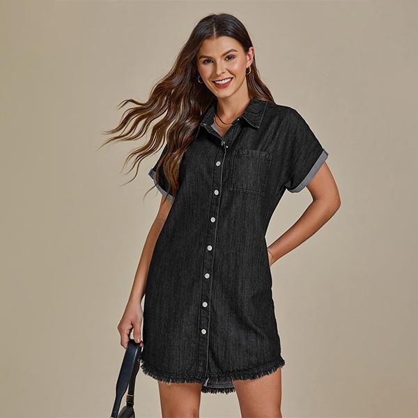 I get a lot of compliments in this dress, the color is a perfect red and made of quality denim.