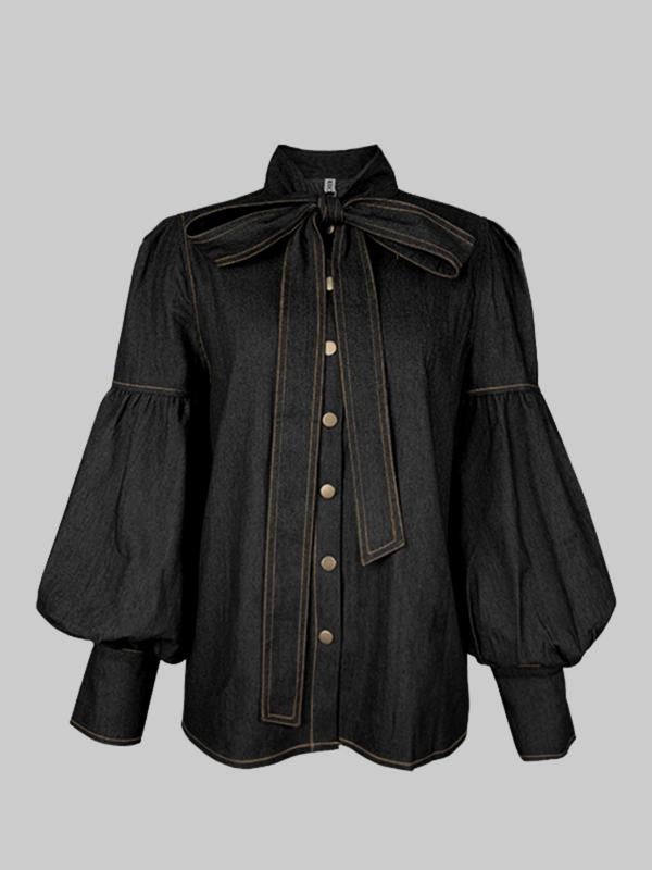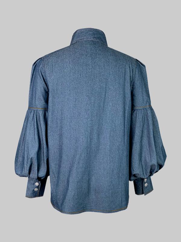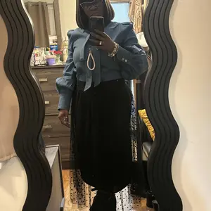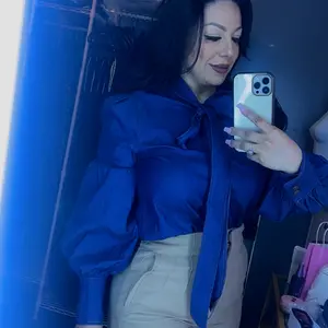 This shirt is even more beautiful in person. It fits great, if fabric is soft, the snap buttons make it easy to put on and take off. The tie at the neck makes the shirt look so elevated, but the sleeves are statement piece that is going to get you noticed!