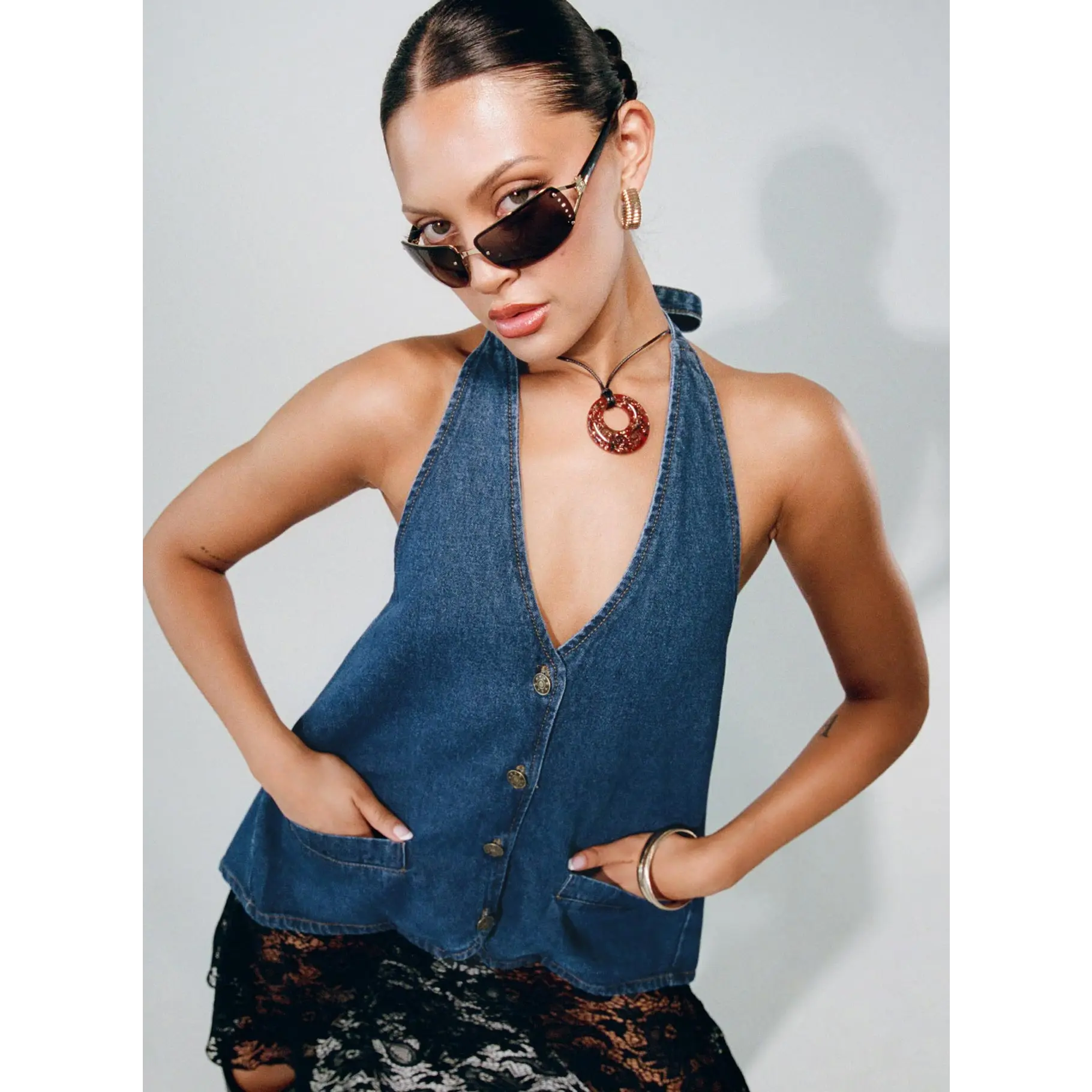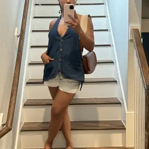 Honestly so obsessed with this one. I was worried about a nip slip, but the girls are completely secured! The back is stunning and I get so many compliments every time I wear it. The quality is great and it washes really well too! Pair with the matching jeans or skirt and it makes the most gorg outfit in the cooler or warmer weather ☺️