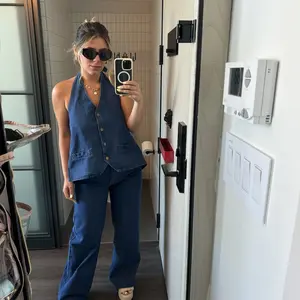 Love them, so comfy and can be dressed up or down. Obsessed with the matching denim top perfect combo set. Would recommend sizing down.