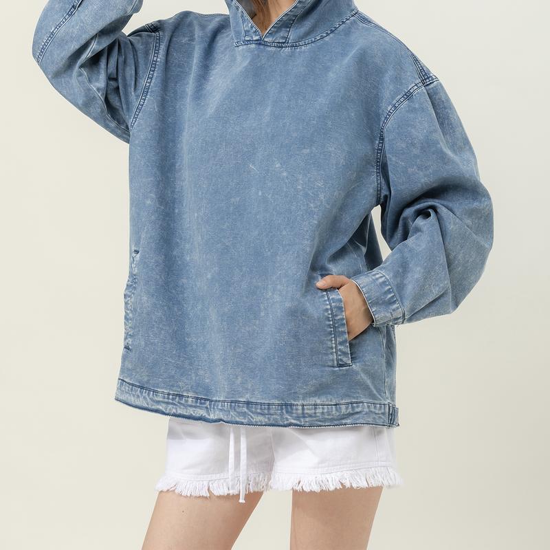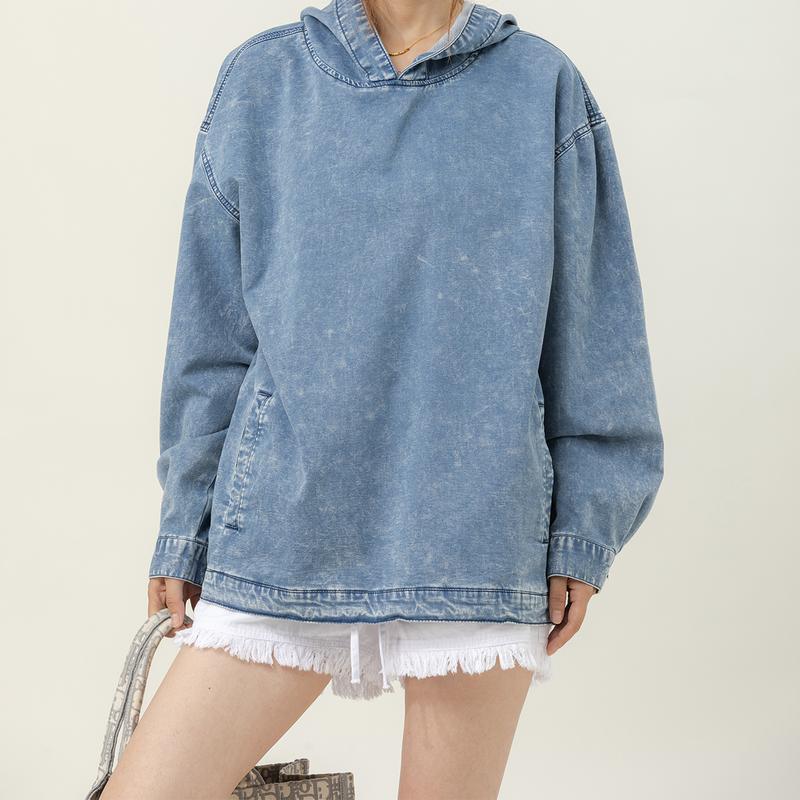 Love this denim sweatshirt soooo much!! I ordered a 2xl and it was comfortably oversized!! I have received many compliments when I wear it!!