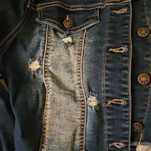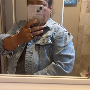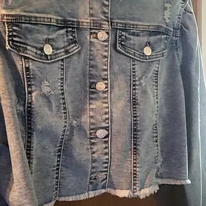 This jacket is super cute and flattering. It’s very stretchy and comfortable. The light wash and distressing makes it cuter. I’m 5’4, 250lbs and ordered an XL. I love it!
