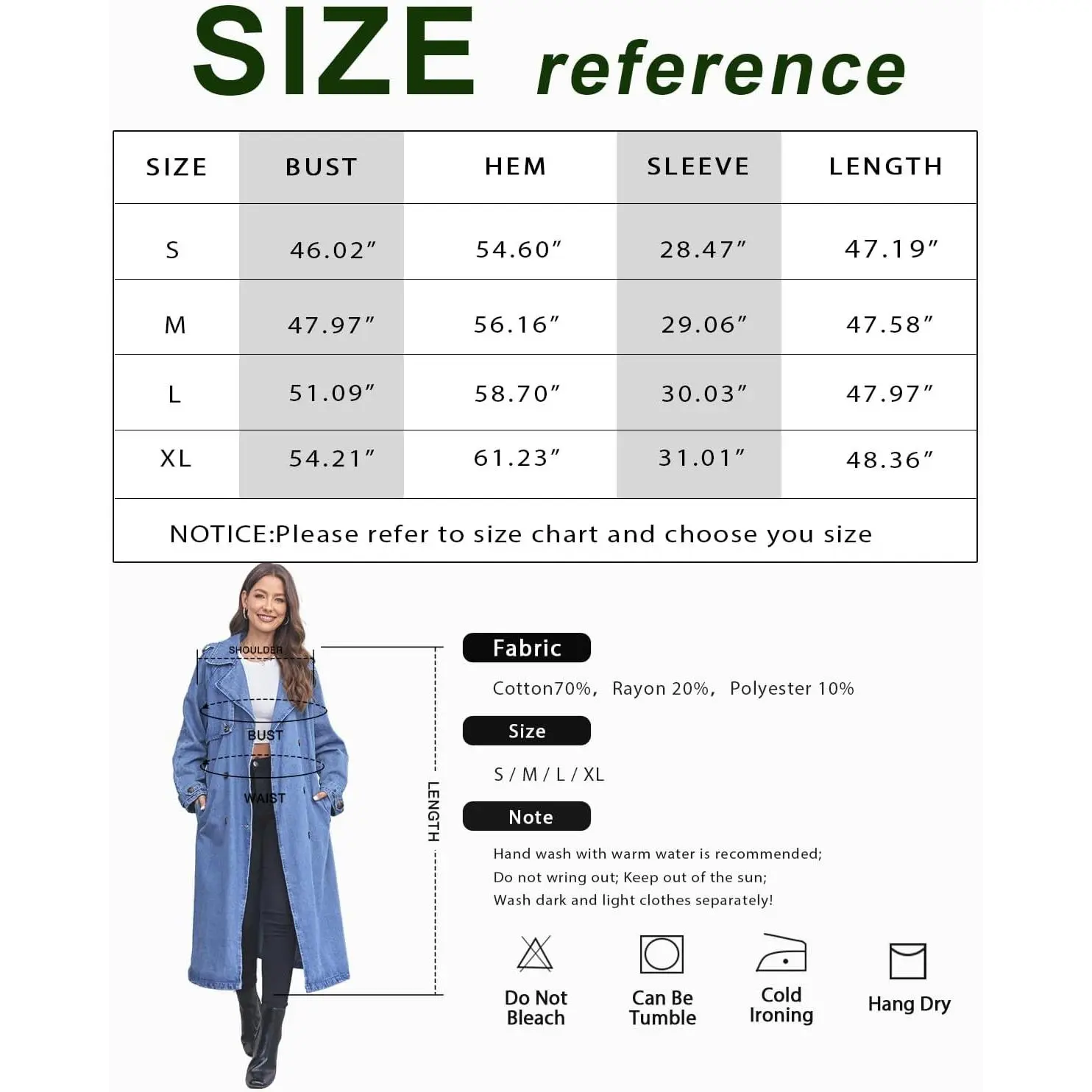Perfect oversized unisex denim trench coat! Perfect for those with Lipedema in their arms! Tall? - No problem! We petites may need to have it altered if that’s your preference. I’m wearing MEDIUM, normally wear L-XXL in jackets/coats due to swollen arms. Check out my full review @The15Eleven.Effect