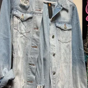 Cute jacket. It’s is longer than in picture but has all the cute distressing. Would recommend but go down a size.