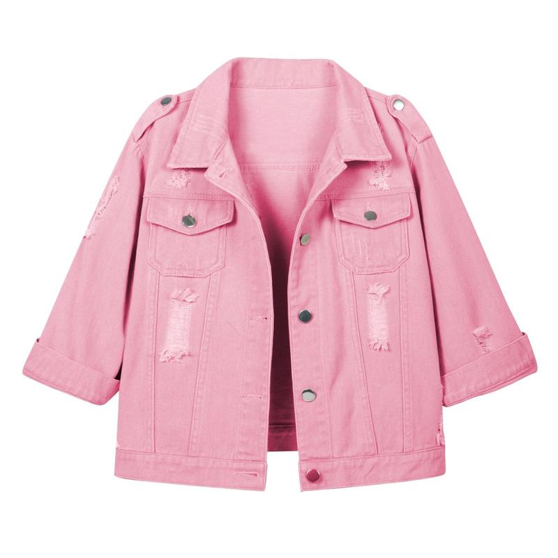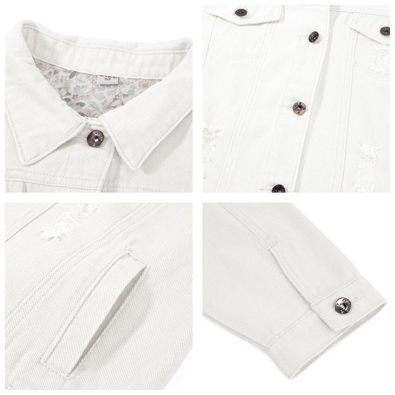 ·Features: Vintage washed jean jackets, classic button down closure, cropped length, distressed denim jacket with two flap pockets, chic ripped holes design, button cuffs, can be rolled up as 1/2 sleeve, multi-pal color oppositions.