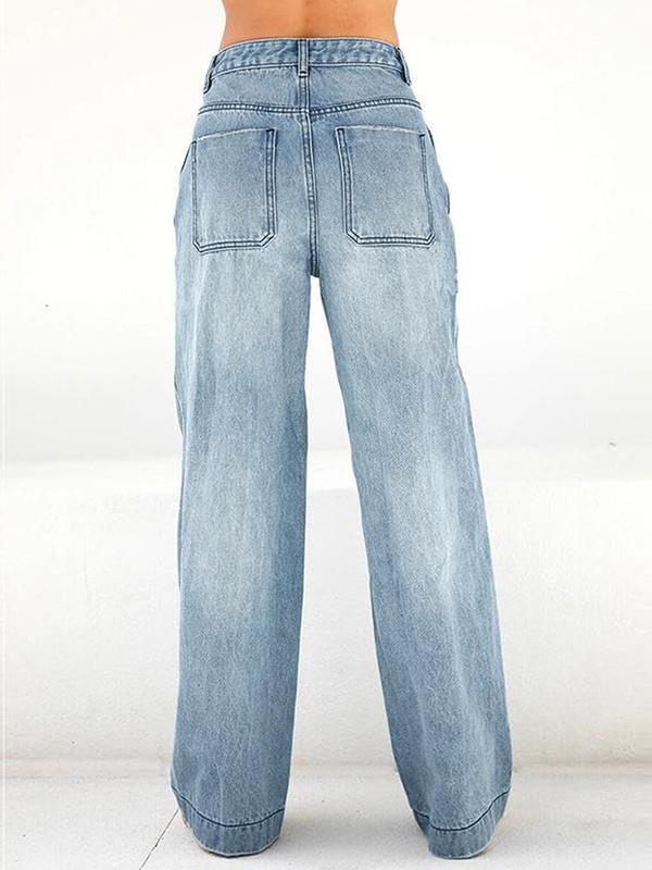 ·Wide Leg Design: The wide leg design provides a comfortable fit, making these jeans suitable for various occasions.