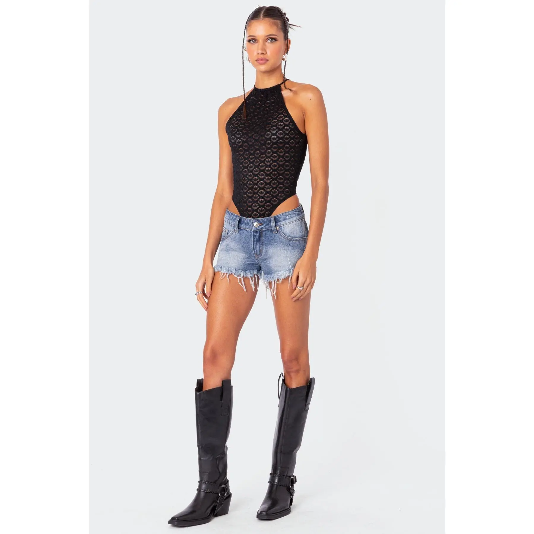 5. Erika Low Rise Frayed Denim Shorts