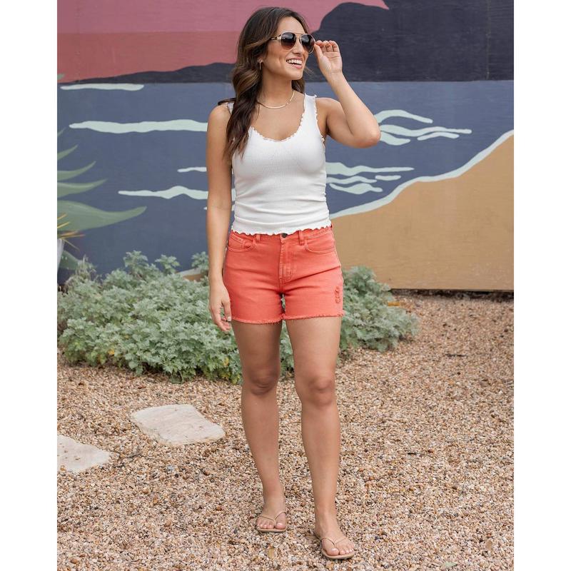 Let your style sizzle in the new Hot Coral Casual Colored Denim Shorts! These vibrant coral colored shorts let you make a serious style statement, all while staying comfy thanks to their premium cotton blend, signature stretch, and ultra flattering fit. Whether strolling the beach or hitting the park, you’ll love pairing these shorts with your favorite tees and tanks all spring and summer long!