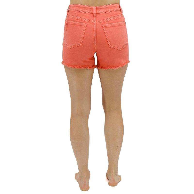 ·Ultra comfortable, casual, relaxed girlfriend fit colored denim shorts in hot coral