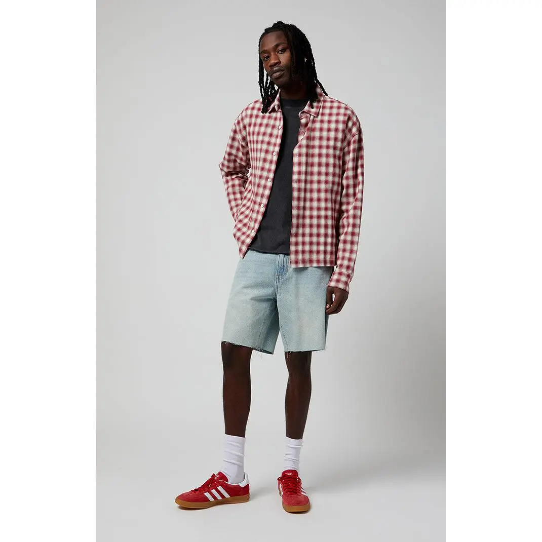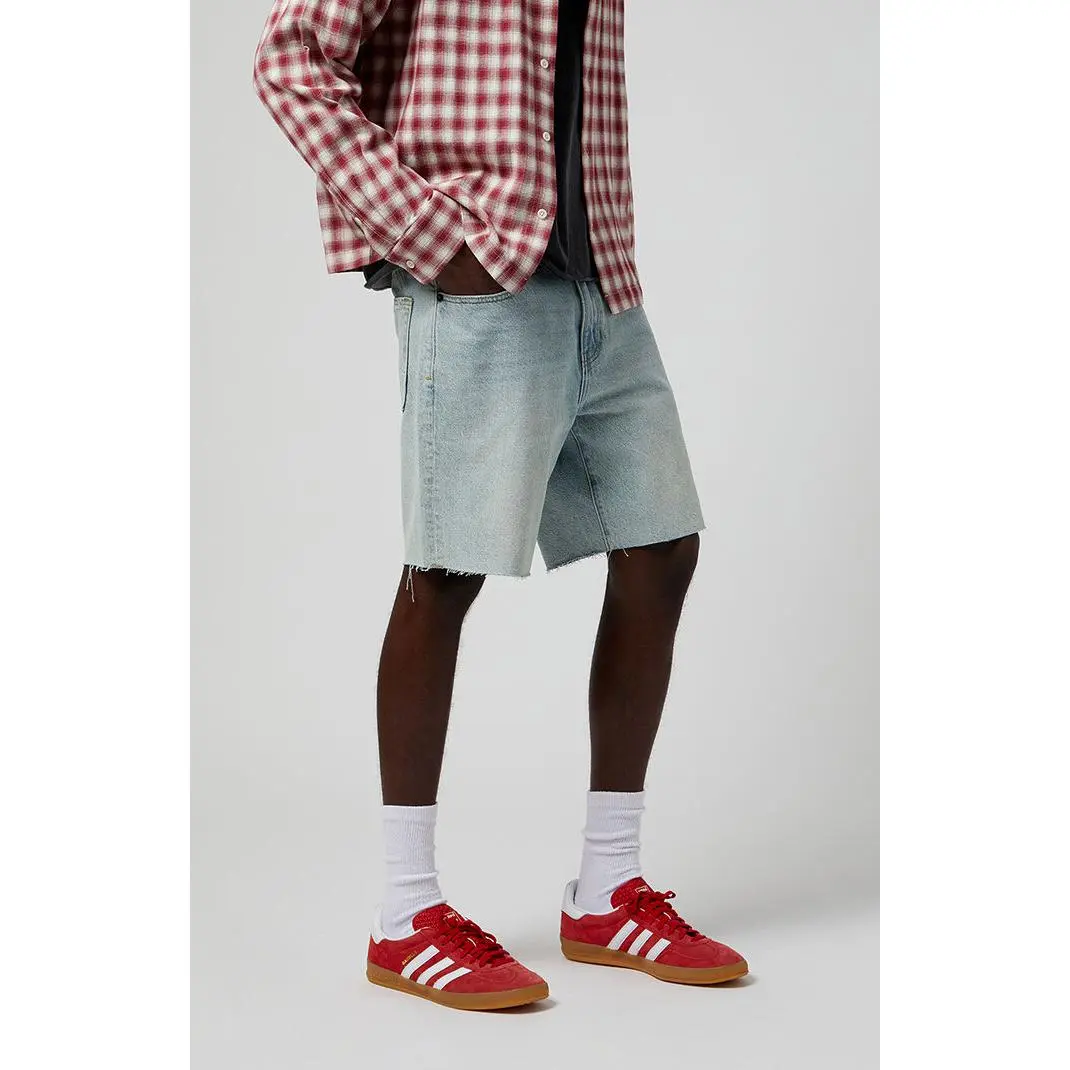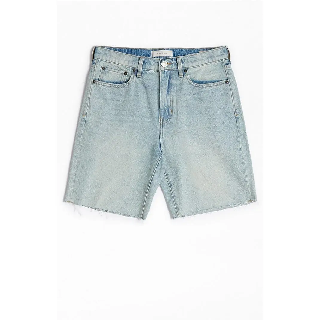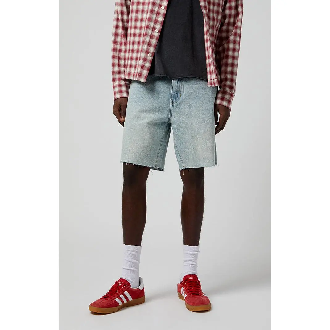 PacSun's Light Indigo Cutoff Denim Shorts redefine casual cool with a light indigo wash and a sustainably sourced cotton fabrication. Rigid in style, these shorts boast a zip-fly closure, a 5-pocket design, and a trendy raw hemline, making them a conscientious and stylish choice for your wardrobe.