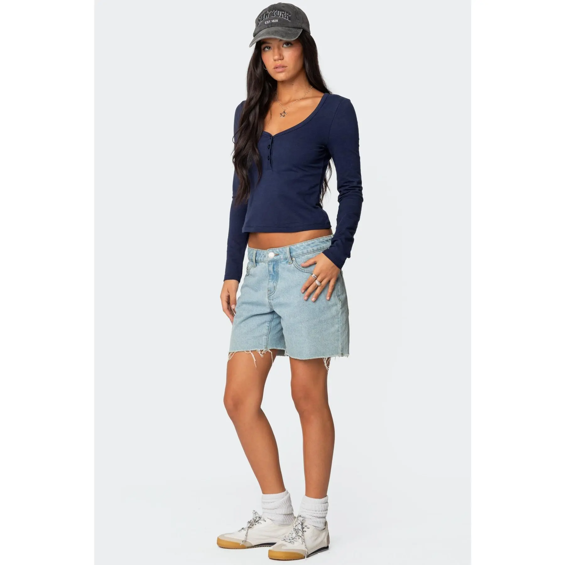 I really liked the style in the picture, but was expecting them to be a bit baggier. I’m usually a M in edikted jeans so that’s the size I ordered for these shorts. They were too tight, would def recommend sizing up. Otherwise the color and length are exactly as pictured.
