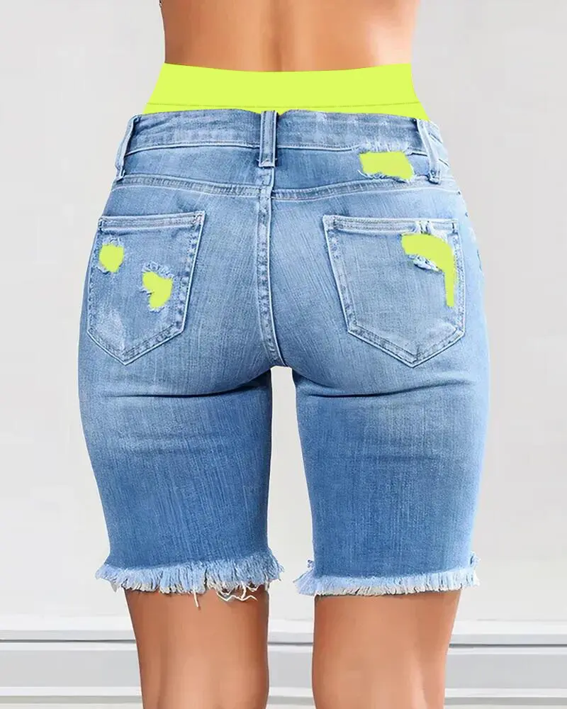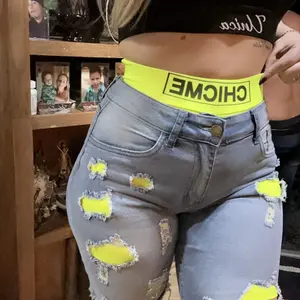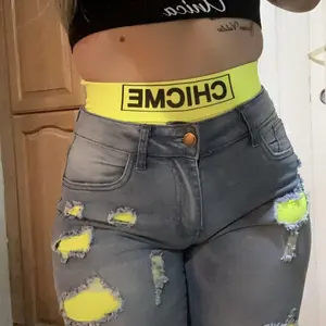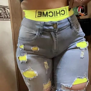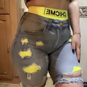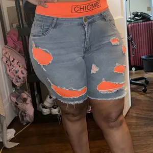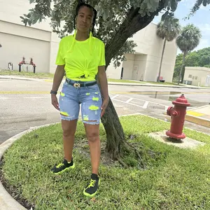 I got many compliments when I wore these. The neon green pops, and you can’t help but to be noticed. I have on a small. I am about 141 pounds at 5”4’. Both the biker shorts and the denim shorts stretch.