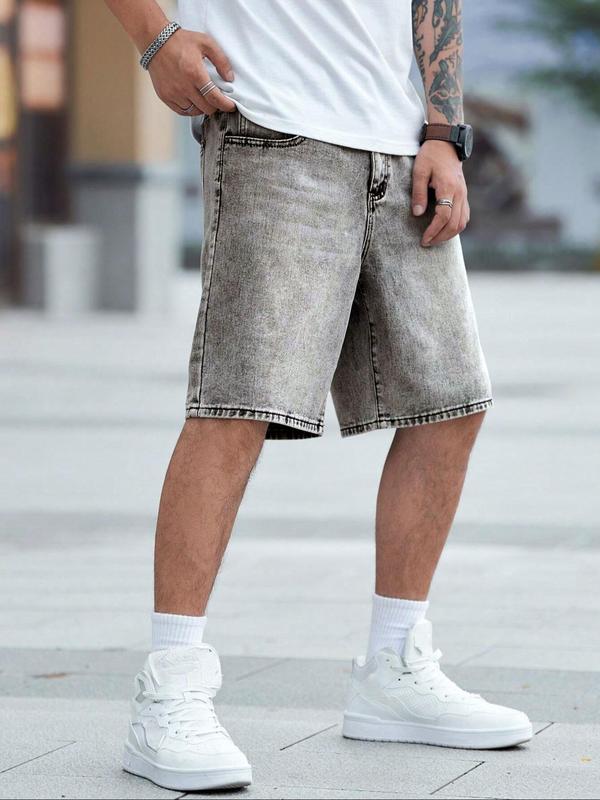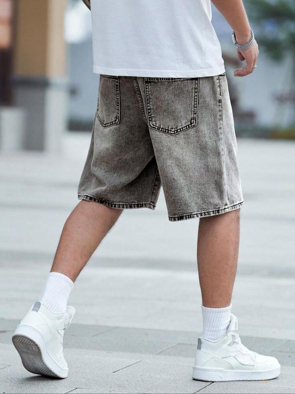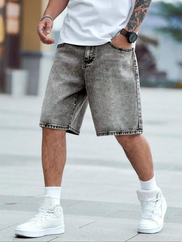 Men's Solid Color Denim Shorts, Loose Casual Fashion Comfy Shorts for Summer, Men's Bottoms for Daily Wear