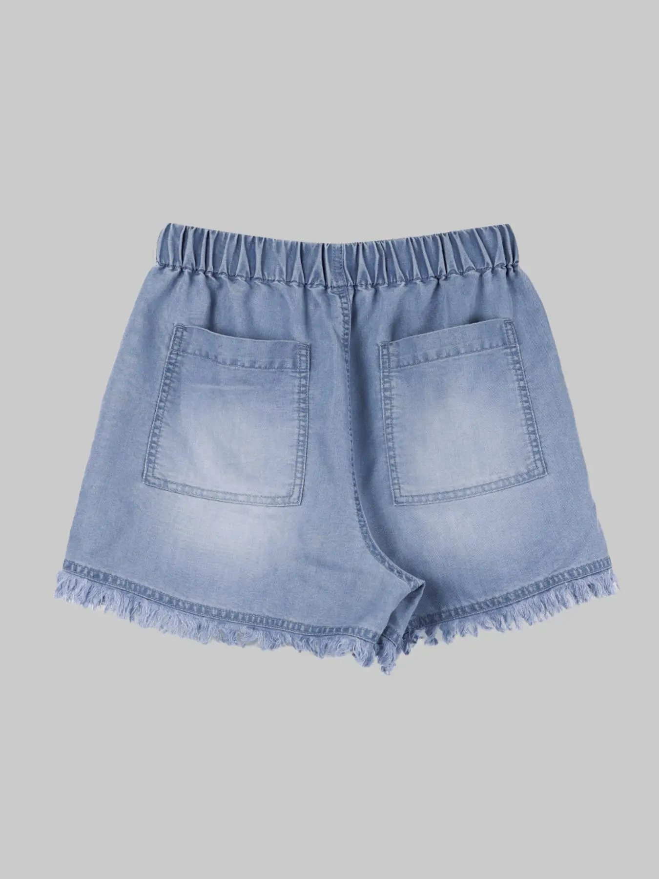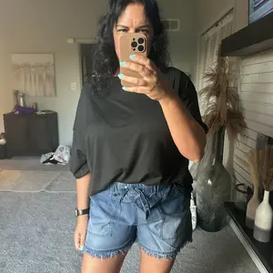 Obsessed with these denim shorts. I have dark denim and want the light wash too. Drawstring works and the pockets are so flattering on my body. In love! Get ya some ladies!