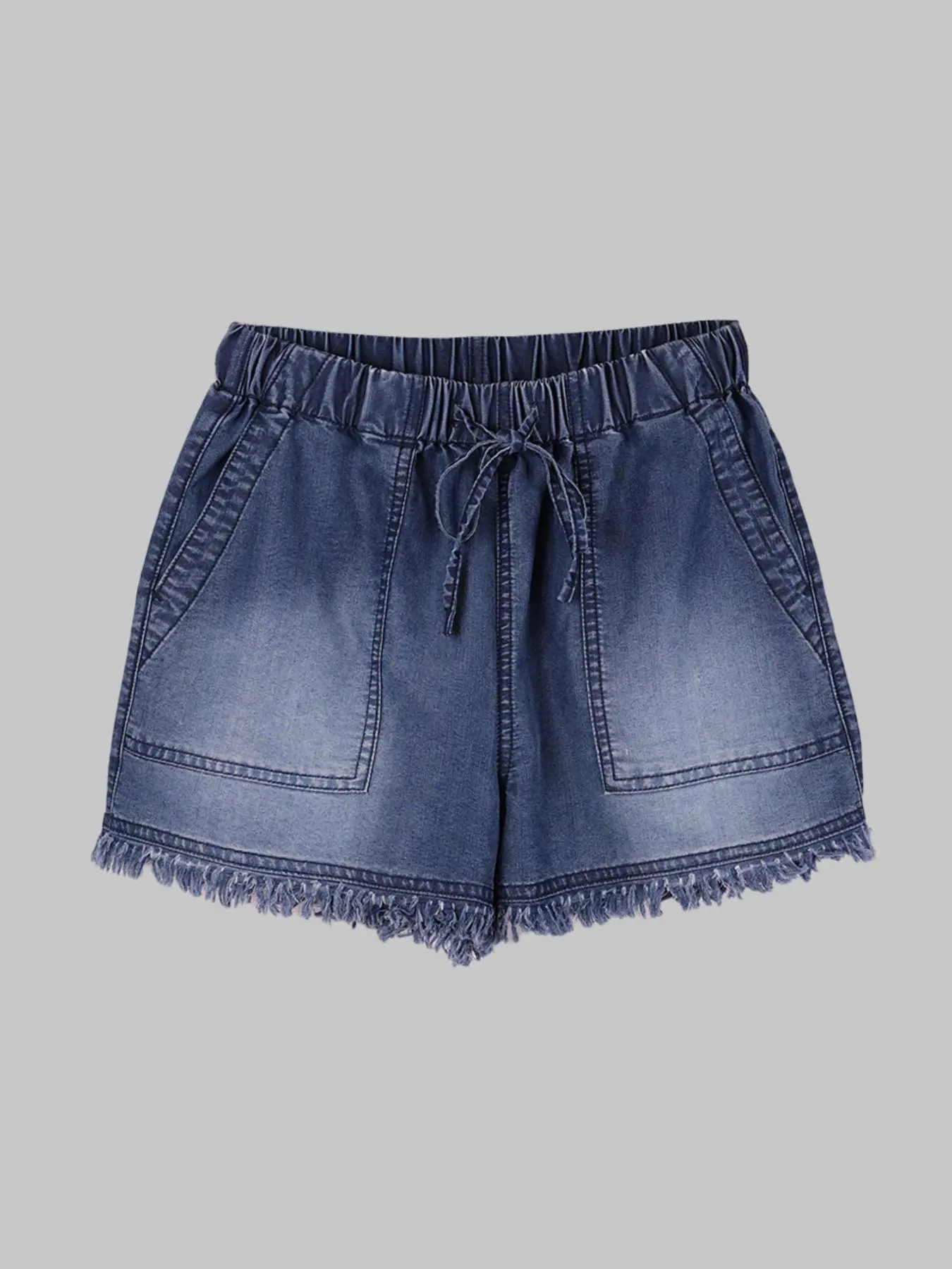 I love the color of the draw string waist denim shorts. They are comfortable but became full washing because they did shrink a little bit. I WOULD AIR DRY.