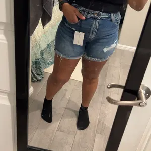 In love with Zanana brand. These shorts fit like a glove. Size Medium. I’m 5’8” and 150 pounds for reference. The stretch is perfect and the dark denim color is so pretty. 💙